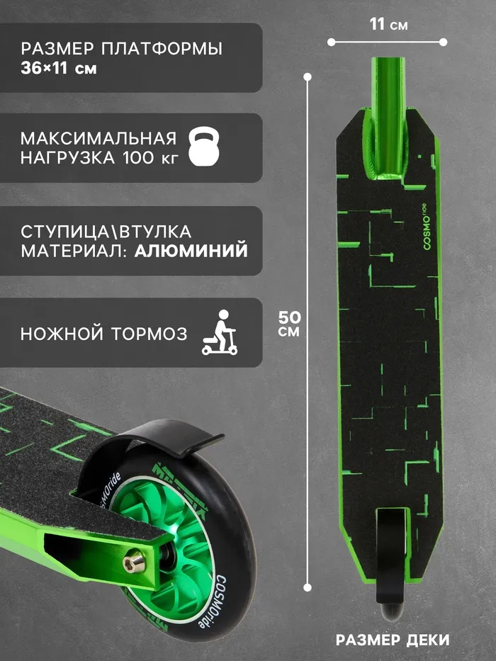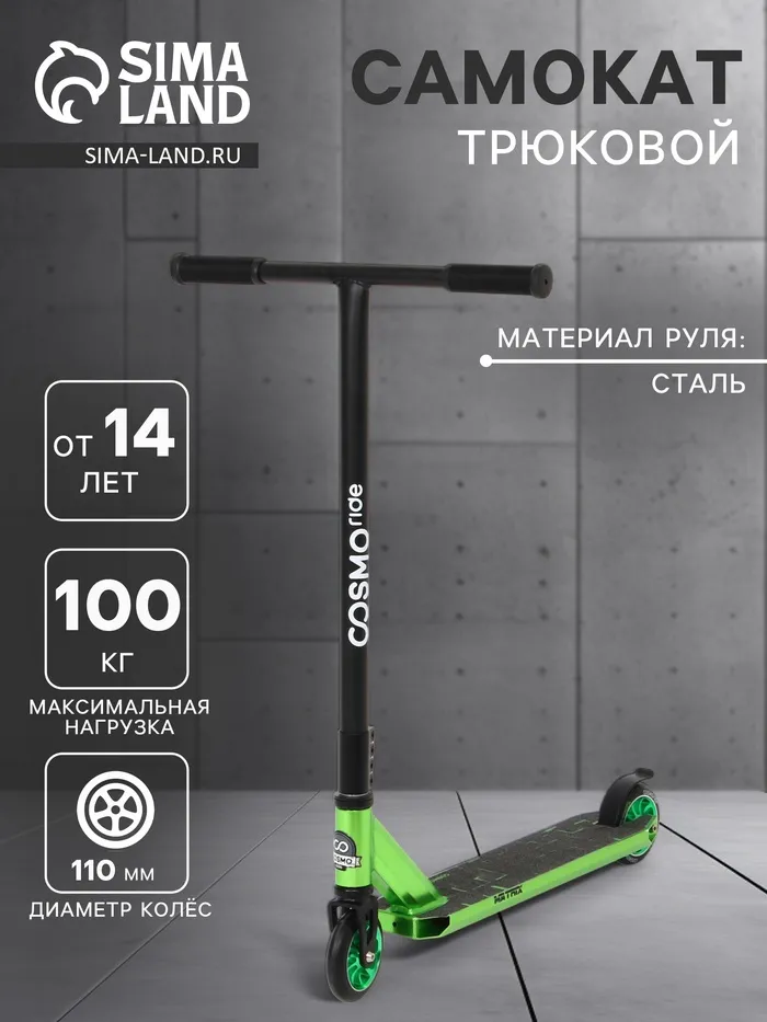 Самокат трюковой COSMORIDE MATRIX CM2021, колёса PU 100 мм, ABEC 7, цвет чёрный — Характеристики