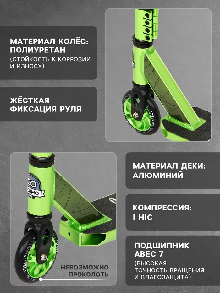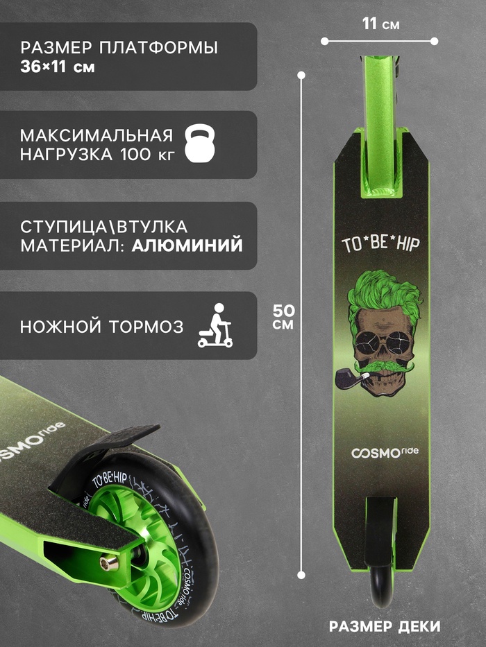 Самокат трюковой COSMORIDE TO*BE*HIP CT2020, колёса PU 100 мм, ABEC 7, цвет чёрный — Характеристики