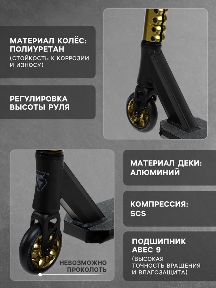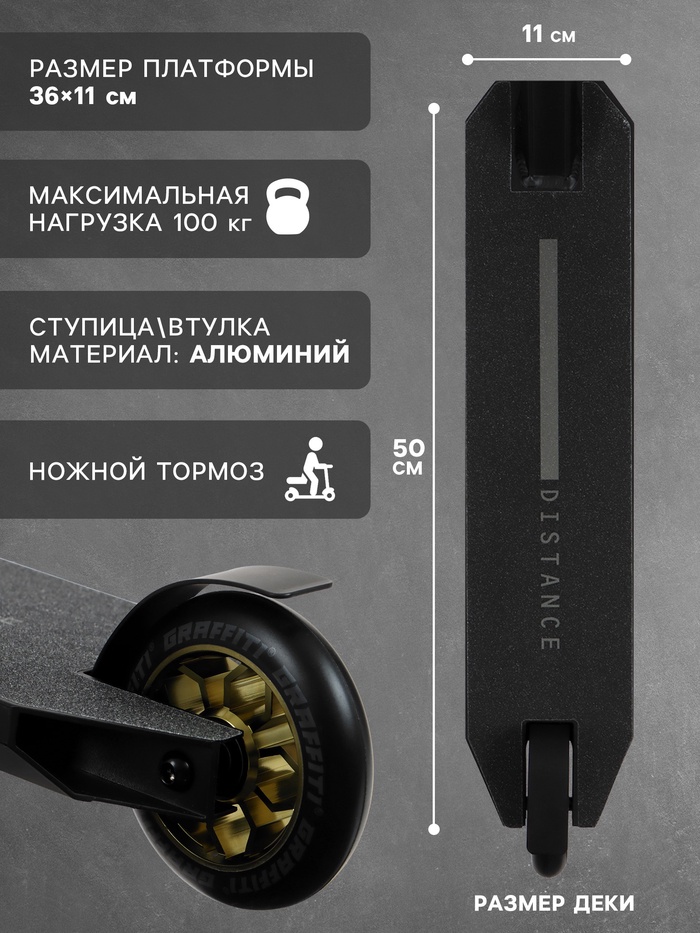 Самокат трюковой GRAFFITI Advanced 24, колёса PU 100 мм, SCS компрессия, ABEC 9 Chrome, цвет чёрный — Характеристики