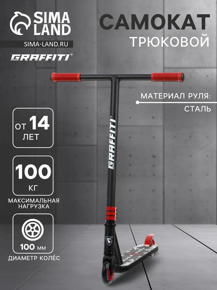 Самокат трюковой GRAFFITI Clever 24, колёса PU 100 мм, резьбовая компрессия, ABEC 9 Chrom, цвет чёрный — Характеристики