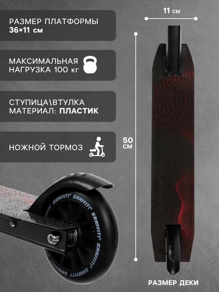 Самокат трюковой GRAFFITI Turn 23, колёса PU 100 мм, 85 А, чёрный — Характеристики