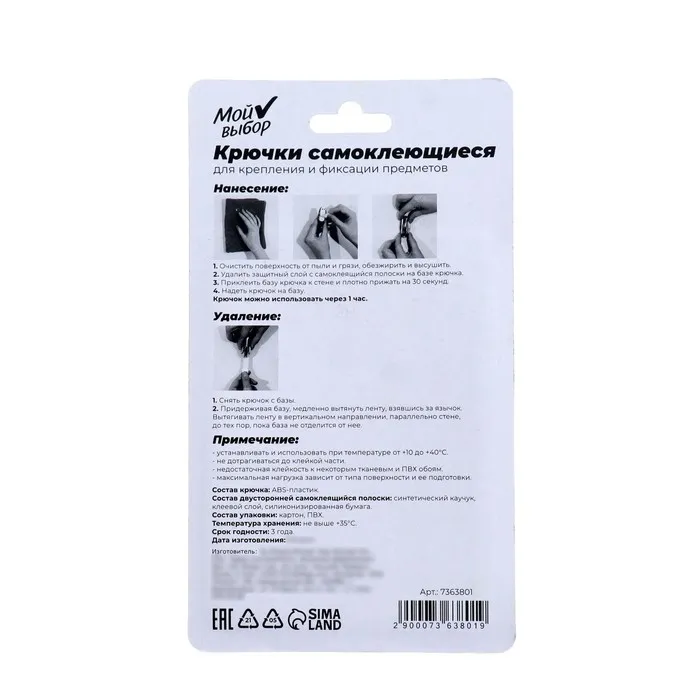 Крючок легко фиксируется на вертикальной поверхности без использования дополнительных инструментов и так же легко снимается. Максимальная нагрузка составляет 1 кг, что делает наши крючки идеальным выбором для картин и рамок с веревочными петлями. Позвольте своему пространству заиграть новыми красками, не беспокоясь о повреждениях или лишних затратах.