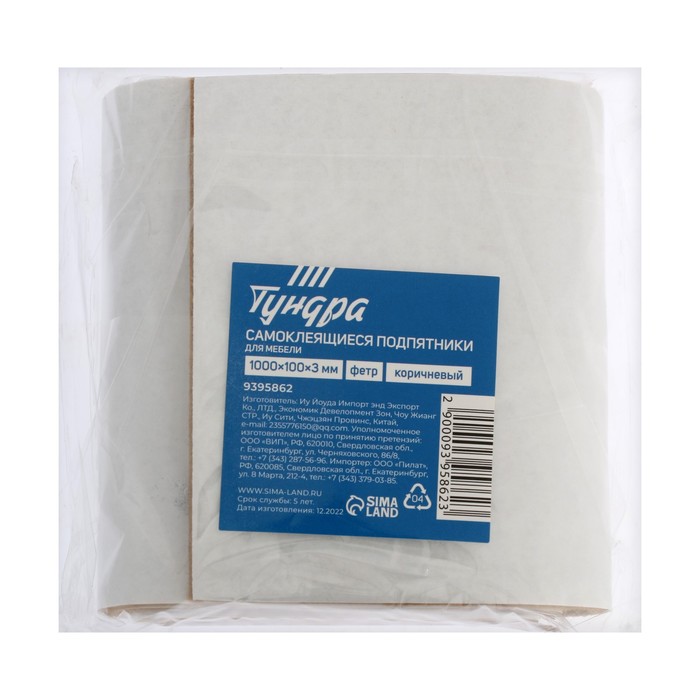 Самоклеящиеся подпятники для мебели ТУНДРА 100×10×0.3 см, фетр, коричневые — Характеристики