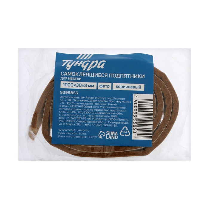 Самоклеящиеся подпятники для мебели ТУНДРА 100×3×0.3 см, фетр, коричневые — Характеристики