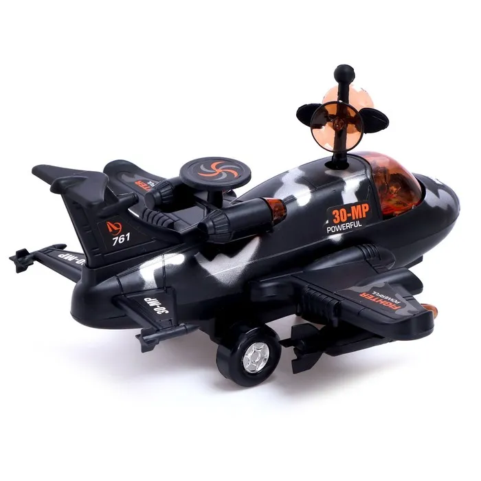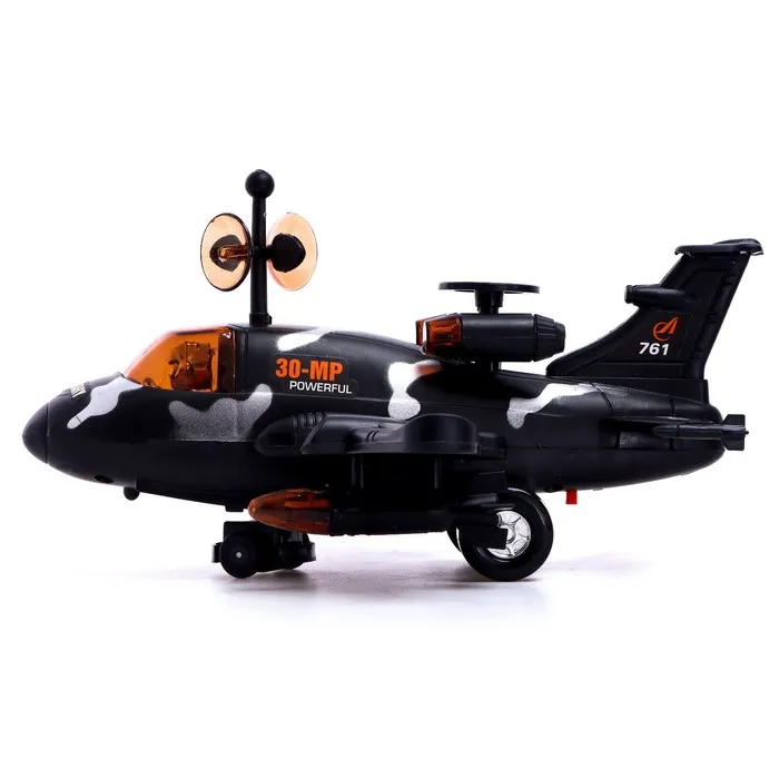 Самолет «Разведчик», свет и звук, работает от батареек, цвет чёрный — Характеристики