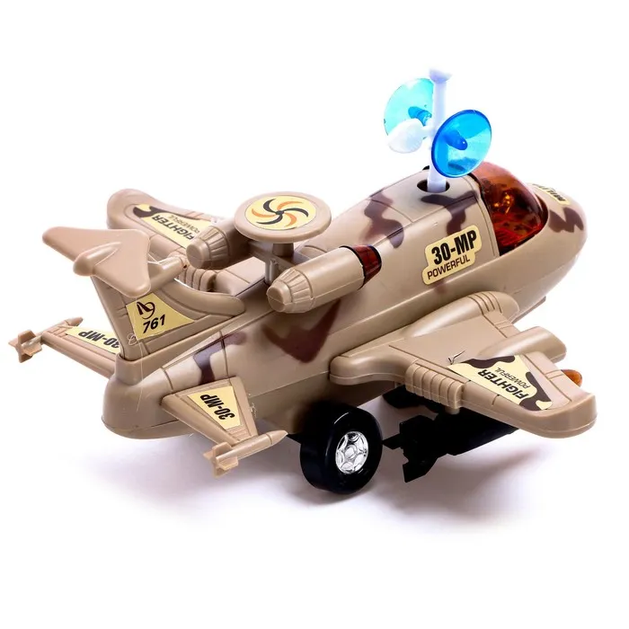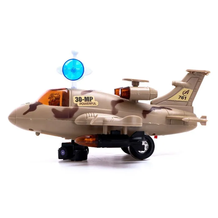 Самолет «Разведчик», свет и звук, работает от батареек, цвет коричневый — Характеристики