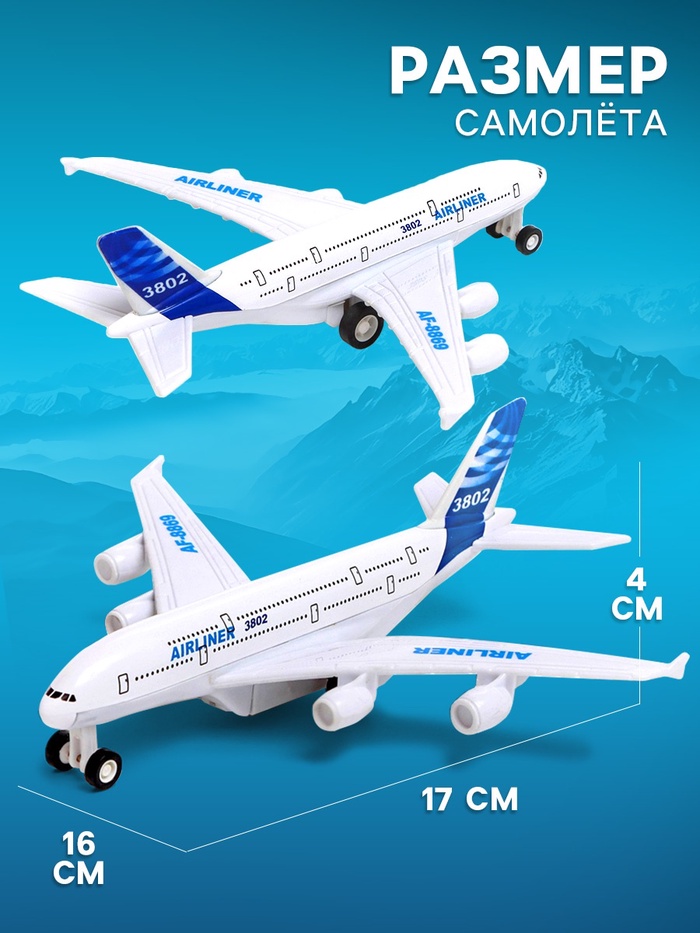 Самолёт металлический «Пассажирский», инерционный, световые и звуковые эффекты, цвет бело-синий — Характеристики