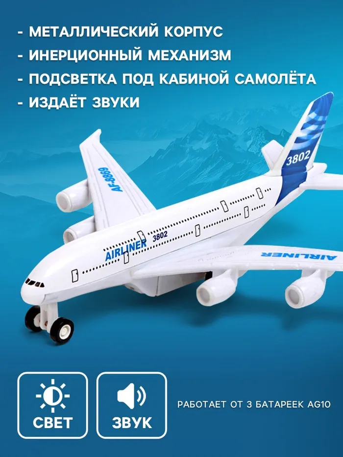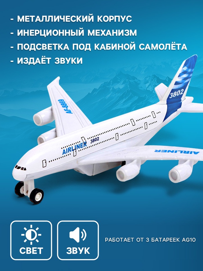 - Звуковые эффекты: издаёт звуки работы самолёта.