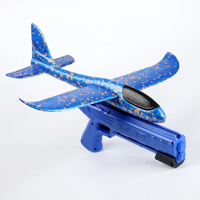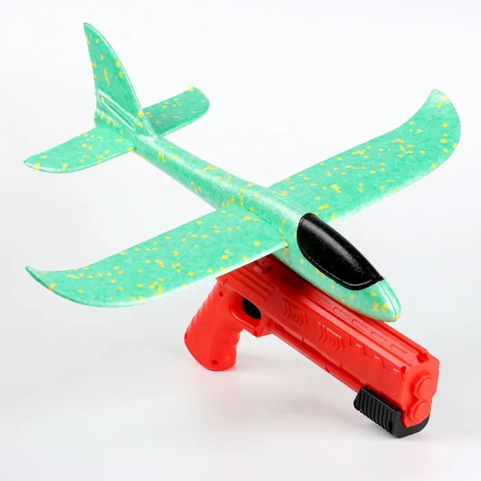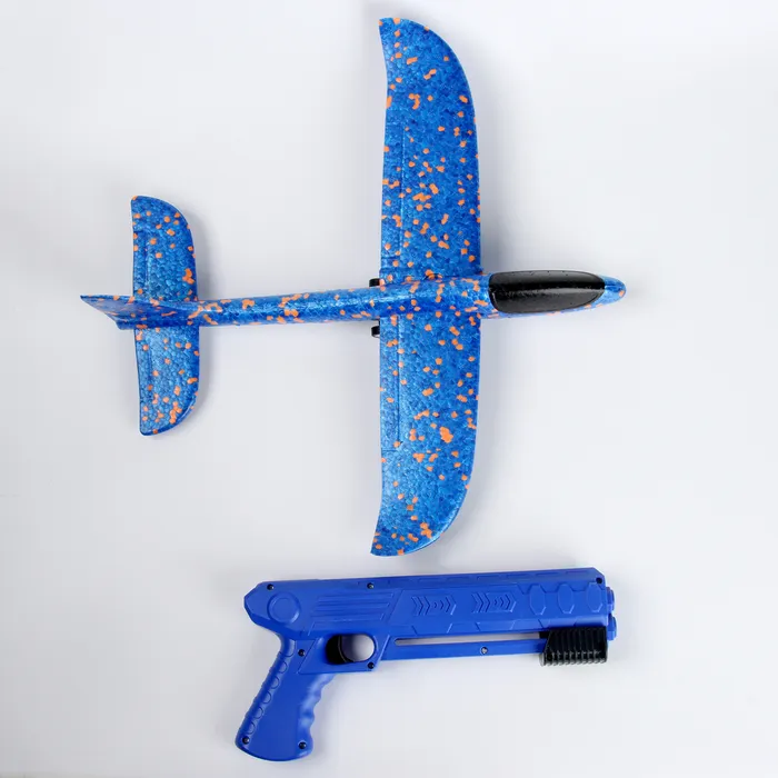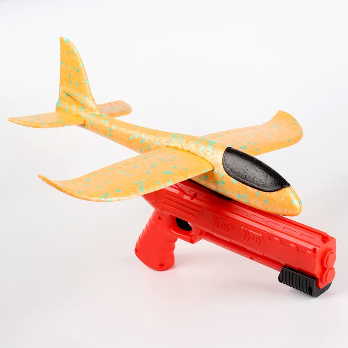 Самолёт с пистолетом-катапультой станет отличным подарком для мальчиков и девочек! Благодаря катапульте самолёт легко запустить на большое расстояние: просто вставьте самолёт в катапульту, прицельтесь и нажмите на курок — самолёт полетит далеко!