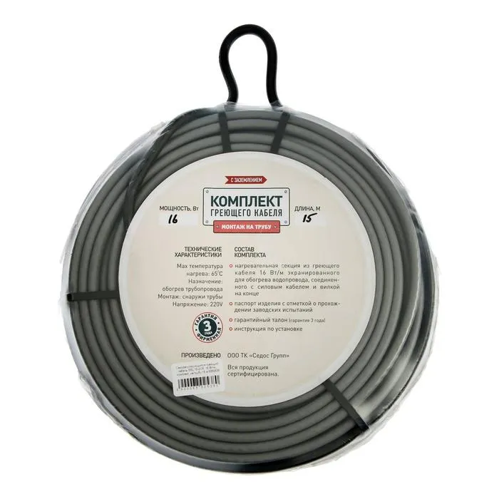 Саморегулирующийся греющий кабель SRL 16-2CR, 16 Вт/м, комплект, на трубу 15 м — Характеристики