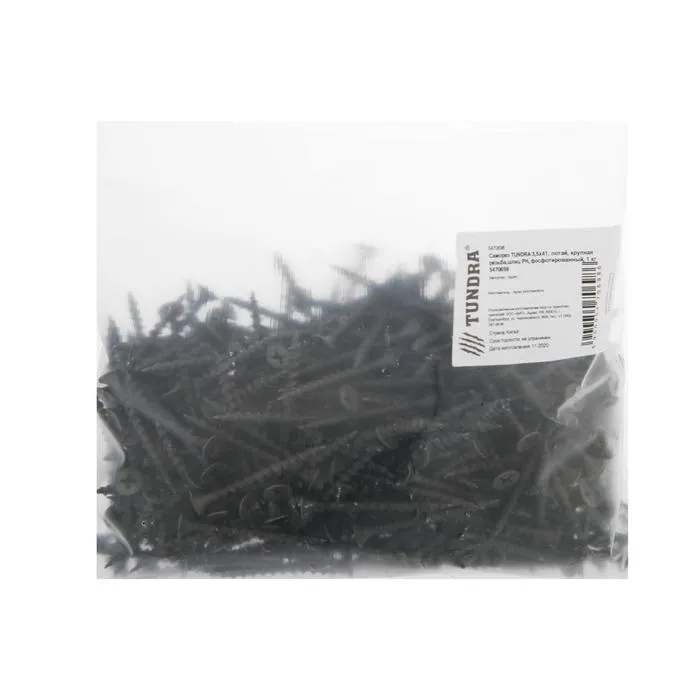 Саморез 3.5×45 мм ТУНДРА PREMIUM, потай, крупная резьба, шлиц PH, фосфатированный, 1 кг