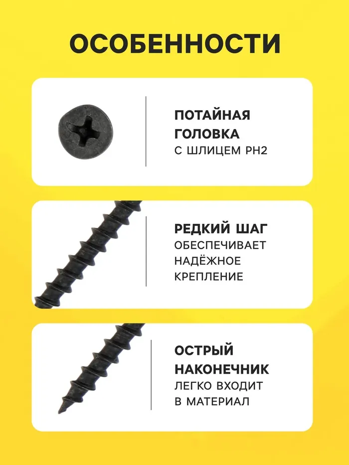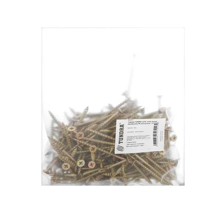 Саморез 4.2×70 мм ТУНДРА PREMIUM, потай, крупная резьба, шлиц PH, желтый цинк, 1 кг — Характеристики
