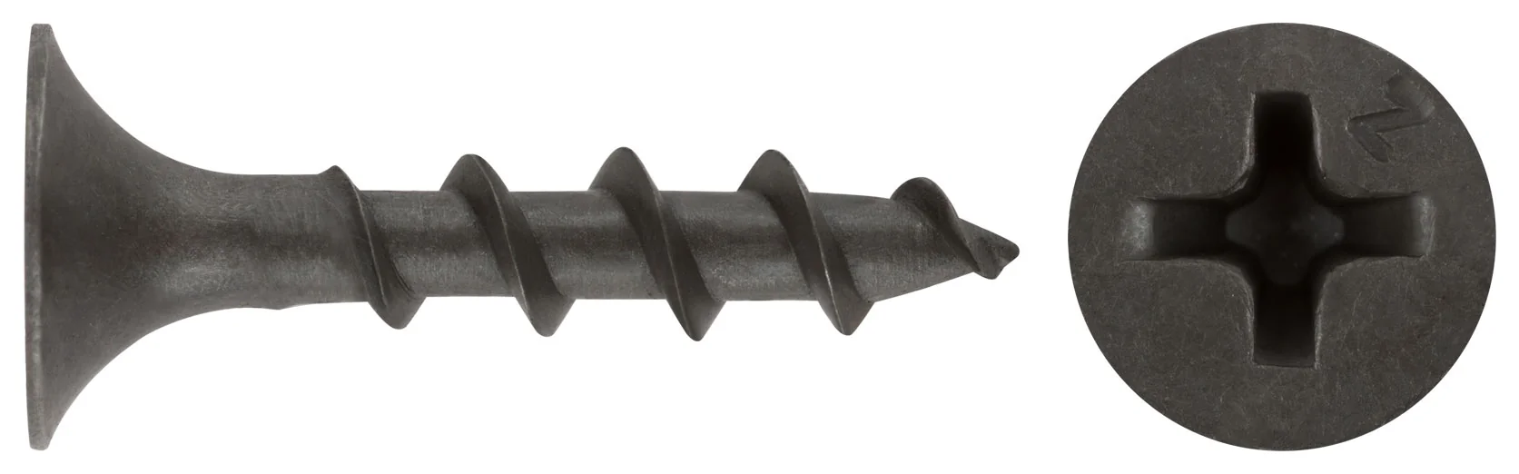 Эти фосфатированные саморезы оснащены острым наконечником и редким шагом резьбы, что позволяет легко проникать в дерево и обеспечивать прочное соединение без предварительного сверления. Рожковая головка способствует надёжному сцеплению, даже при небольшом крутящем моменте.