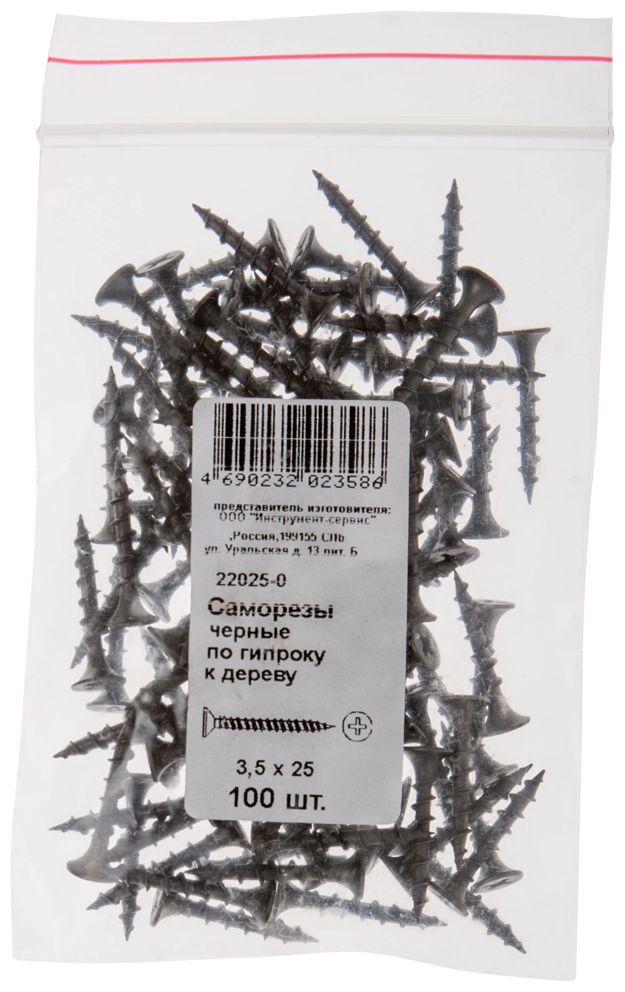 Эти саморезы поставляются в удобной фасовке по 100 штук, что делает их практичным выбором для профессионалов, работающих с большими объемами гипсокартона.