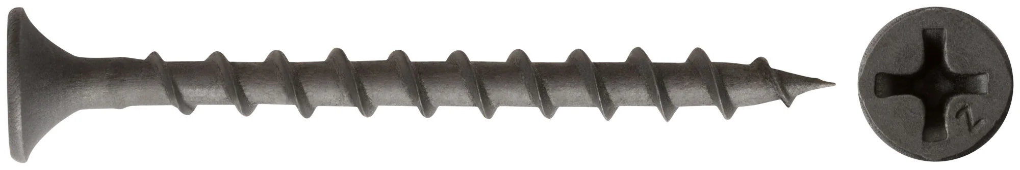 Эти саморезы имеют острый наконечник и редкий шаг резьбы, что обеспечивает легкое проникновение в материал. Рожковая головка способствует плотному прилеганию листов гипсокартона к основанию даже при небольшом крутящем моменте.