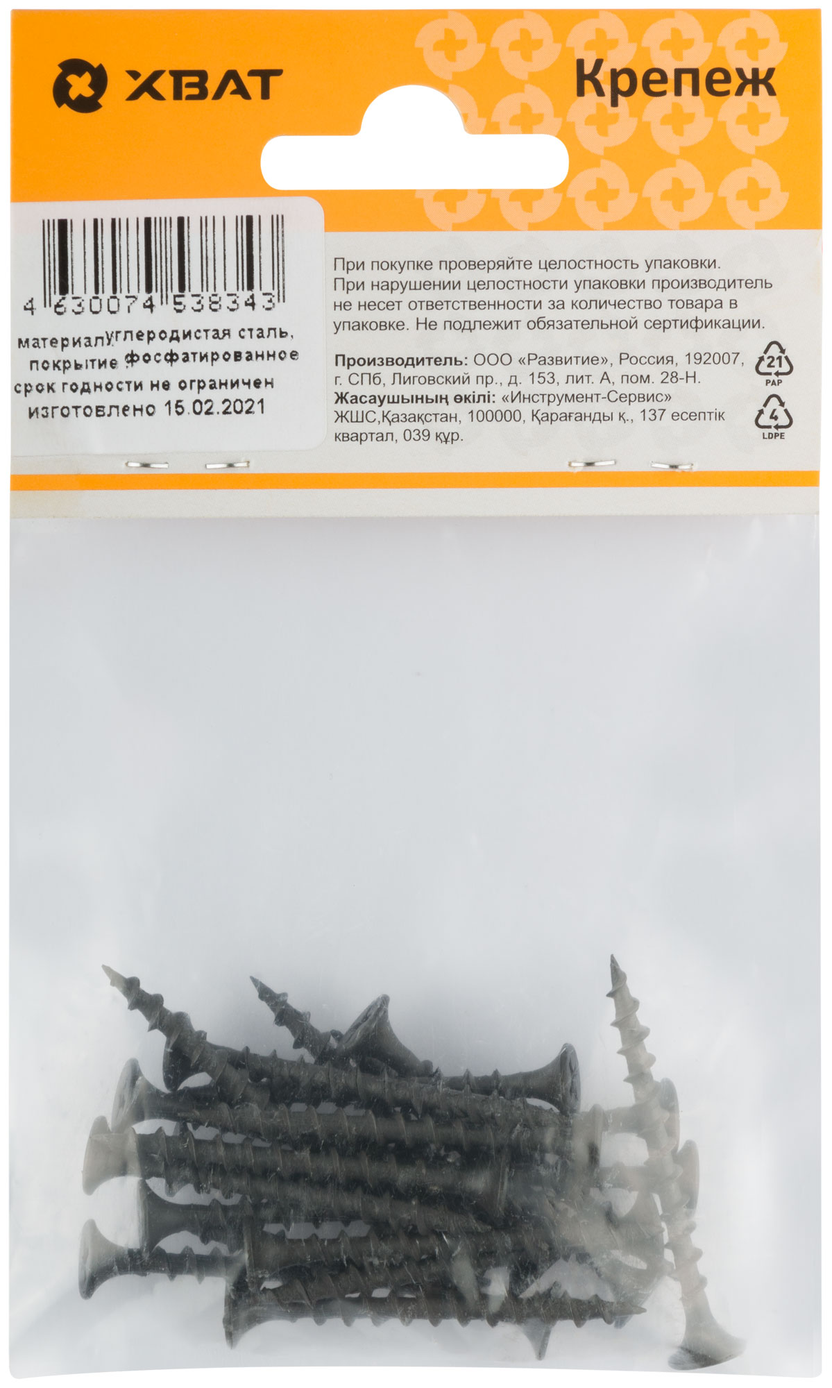 Фосфатированное покрытие защищает от коррозии, повышая долговечность крепежа. Упаковка из 20 штук позволяет удобно использовать саморезы в небольших проектах или для дополнения больших объемов.