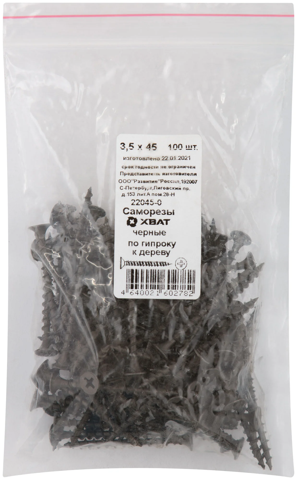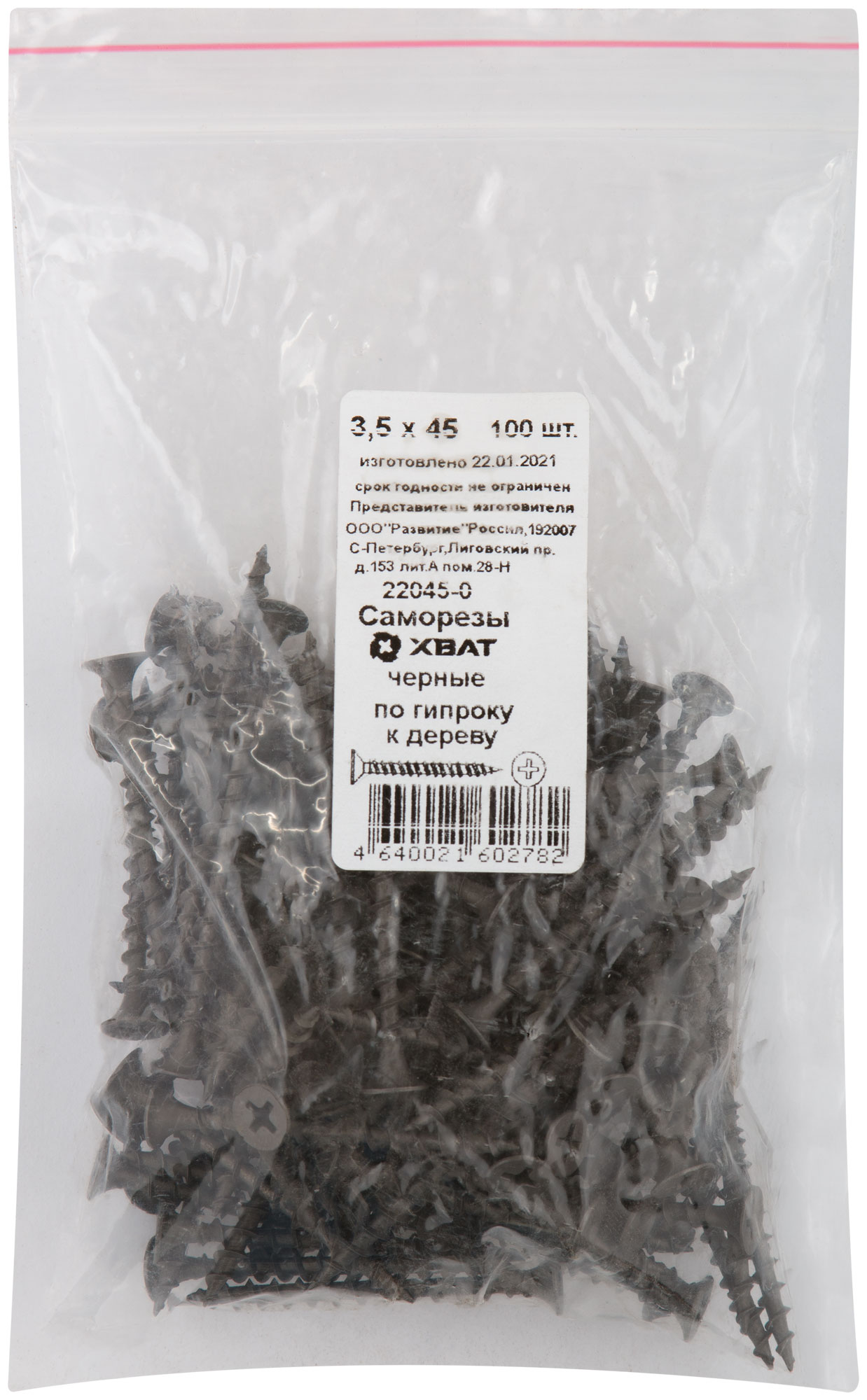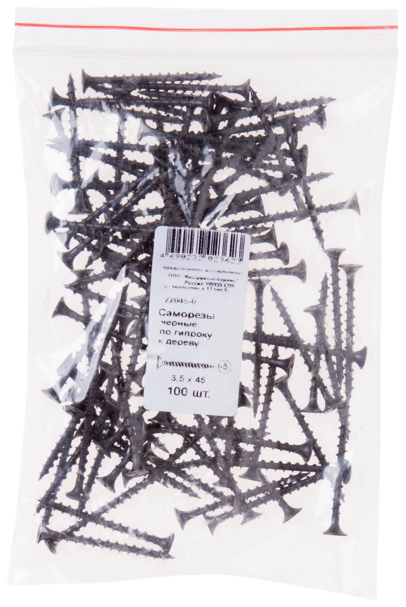 Саморезы черные по гипроку к дереву 3,5 х 45 100 шт Фасовка