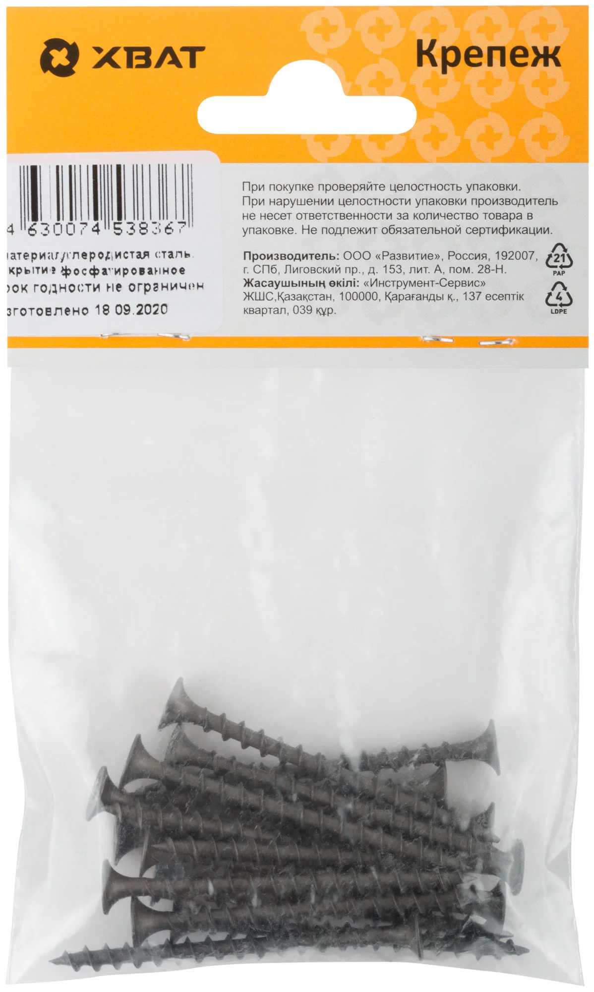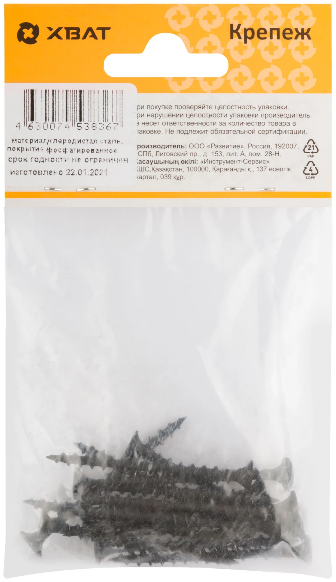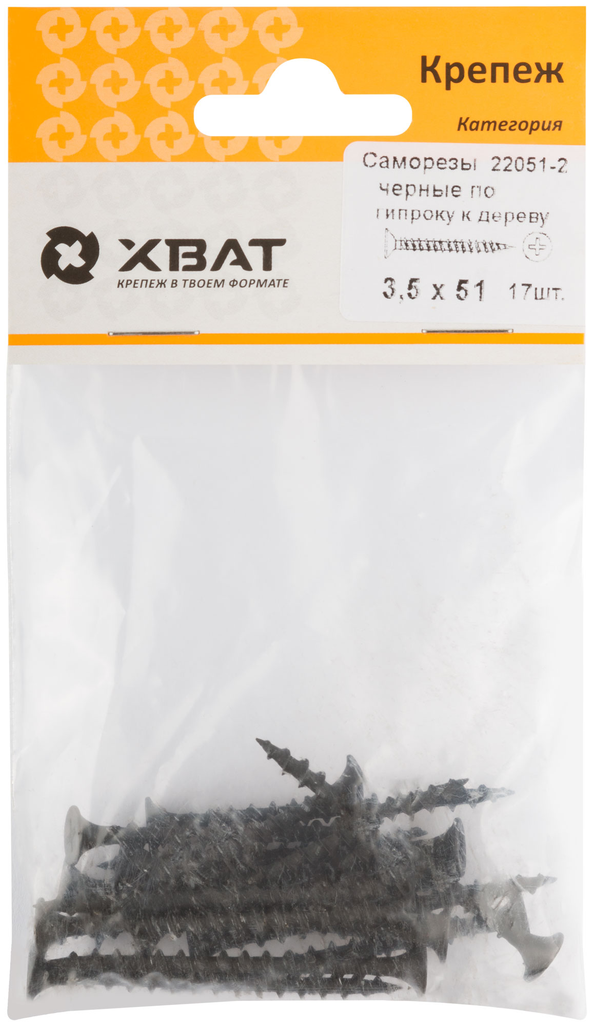 Эти саморезы произведены в России под брендом XВАТ и упакованы в компактную фасовку по 17 штук, что удобно для небольших работ на строительных площадках или при ремонте.