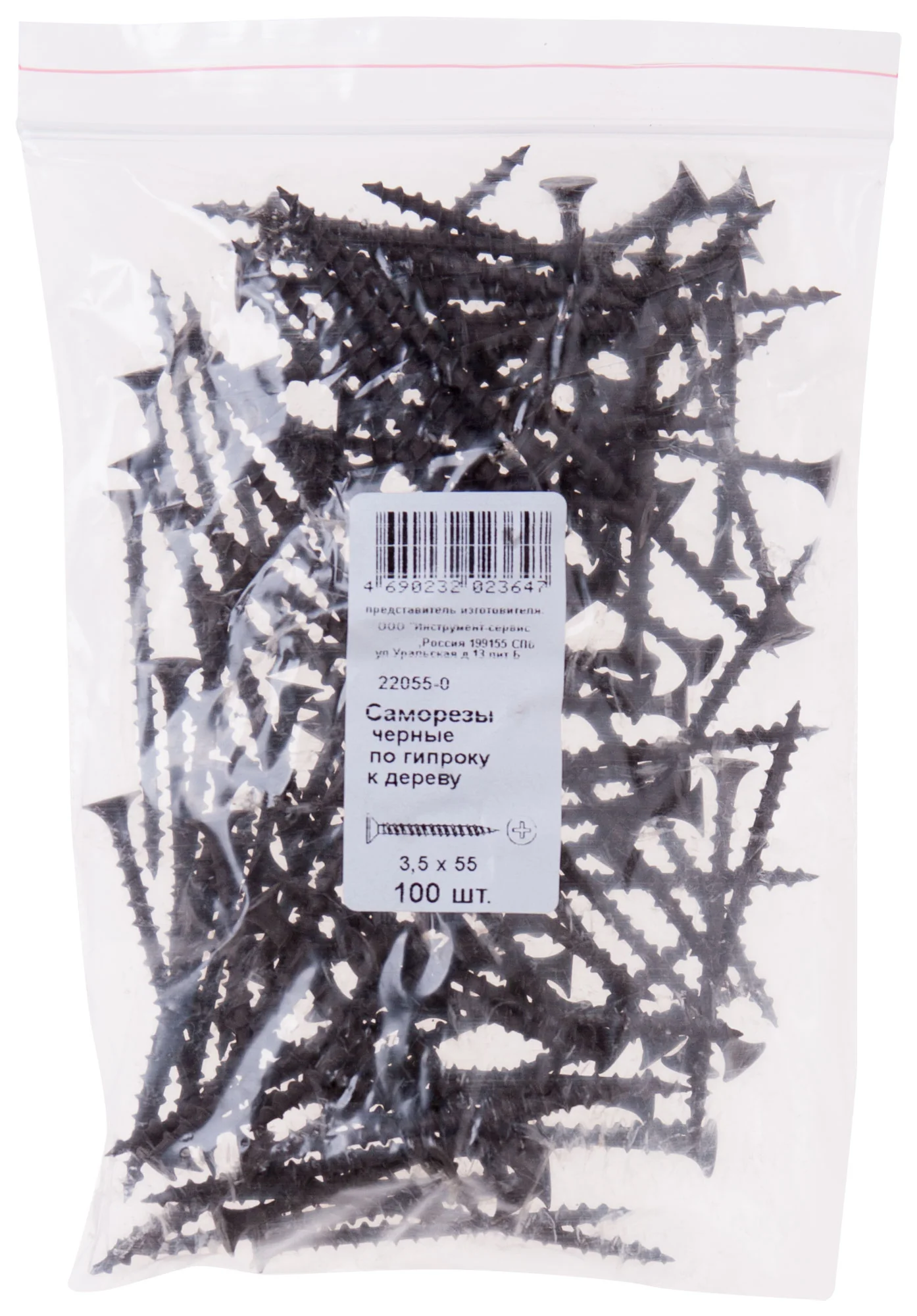 Саморезы имеют фосфатированное покрытие, что обеспечивает долговечность и устойчивость к коррозии. Рожковая головка позволяет легко закручивать их даже при небольшом крутящем моменте, обеспечивая надежное крепление.
