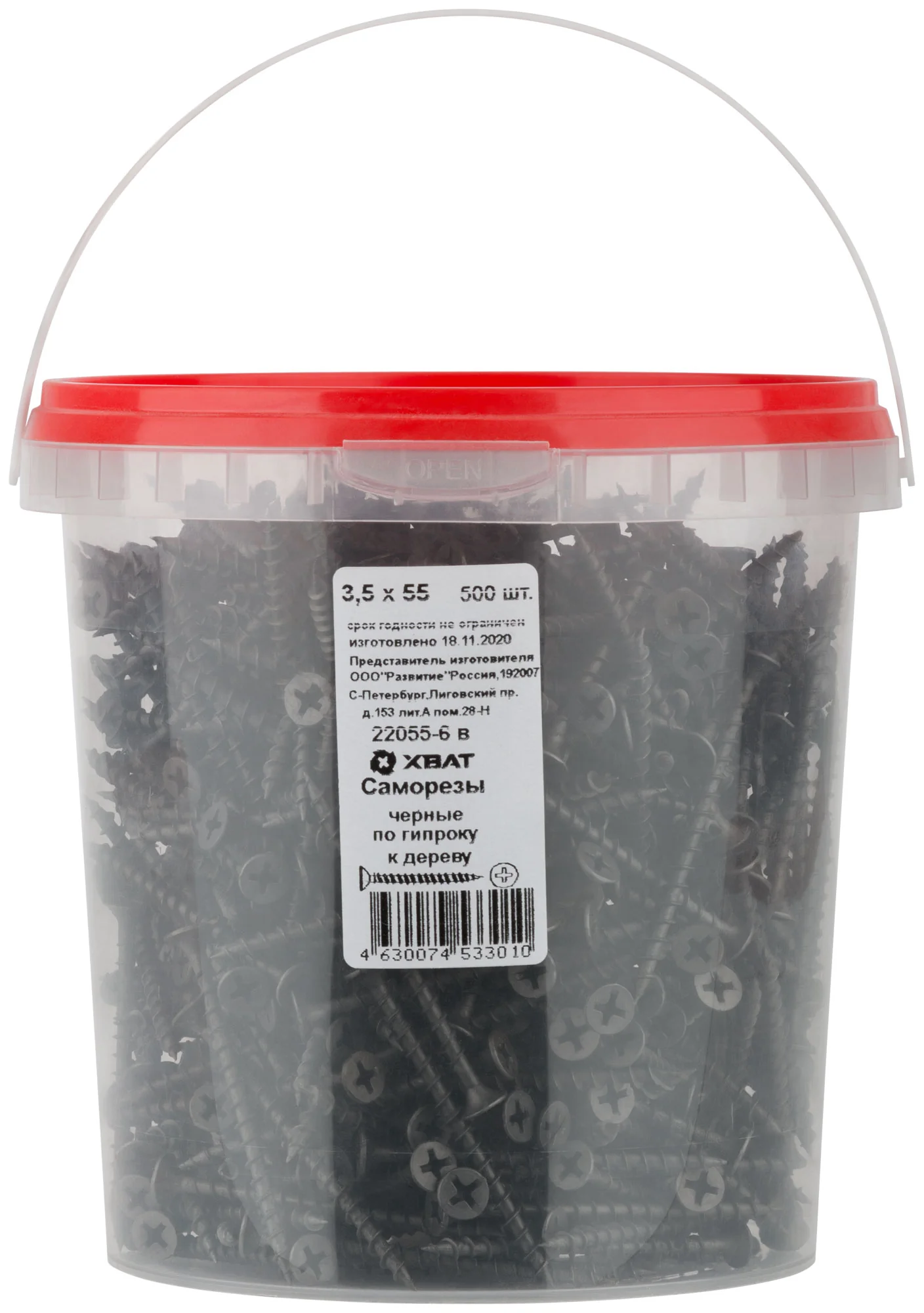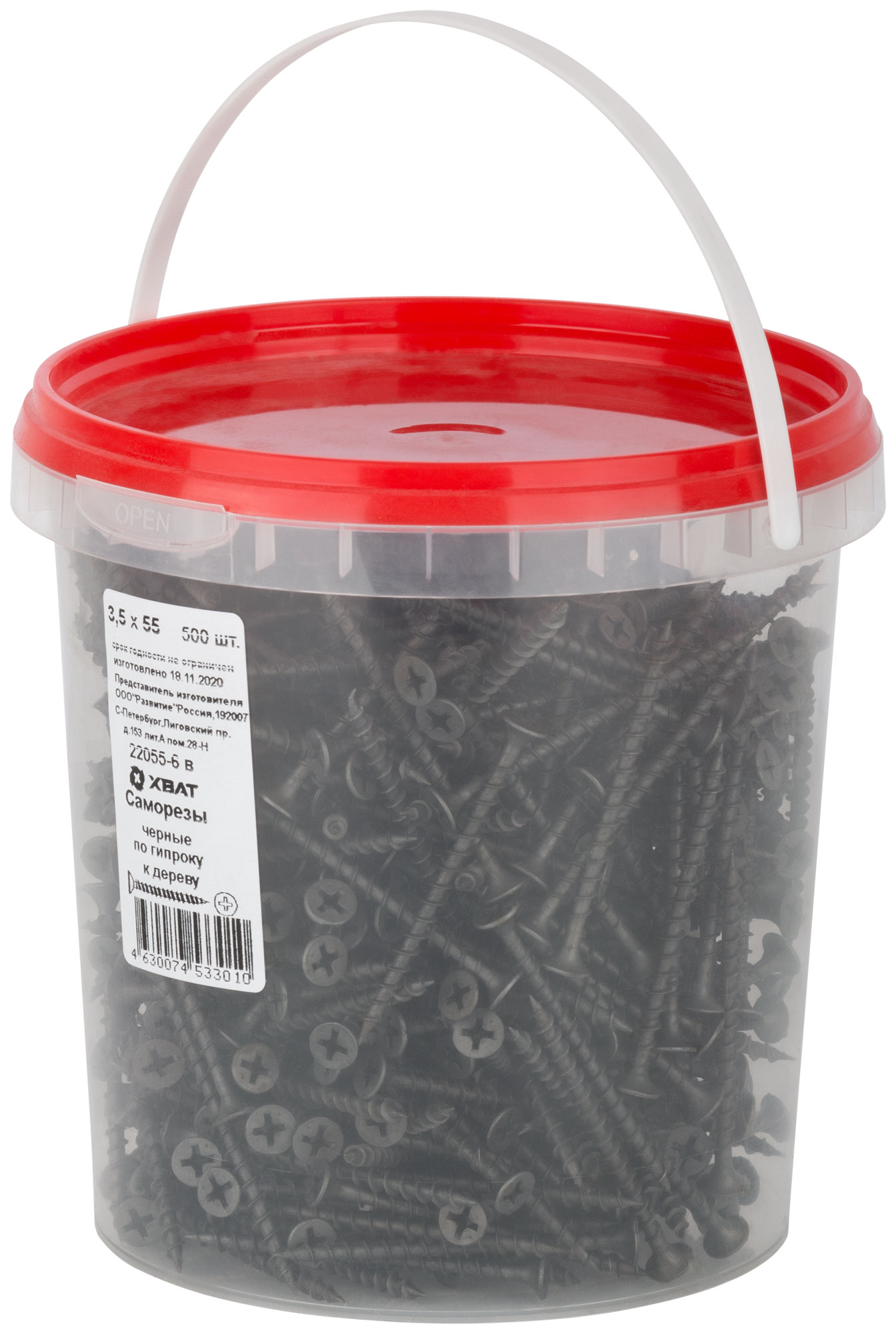 Саморезы имеют редкий шаг резьбы и рожковую головку, что позволяет использовать их при небольшом крутящем моменте, обеспечивая надежность крепления. Фасовка в ведре по 500 штук делает их удобными для использования на стройплощадке, где требуется большое количество крепежа.