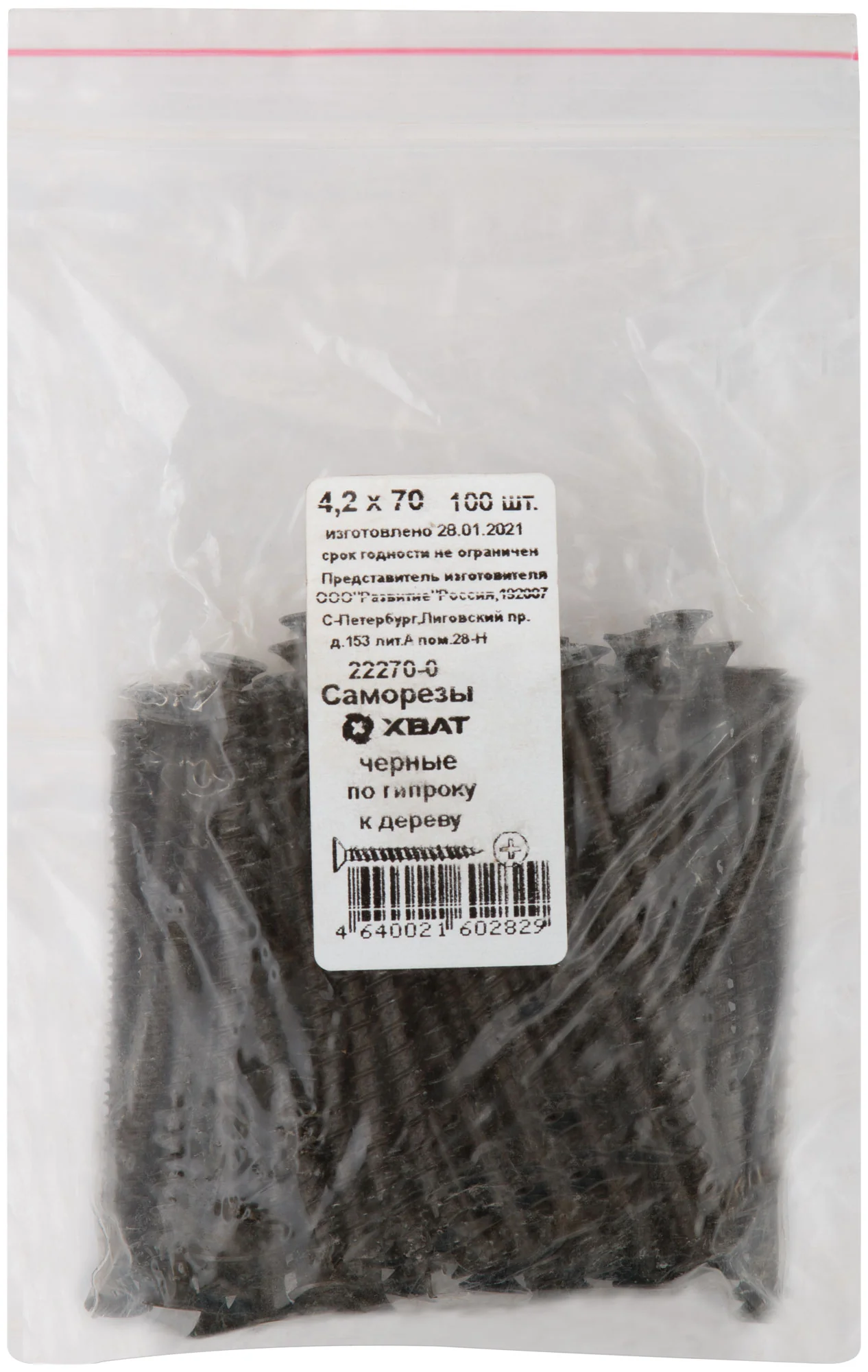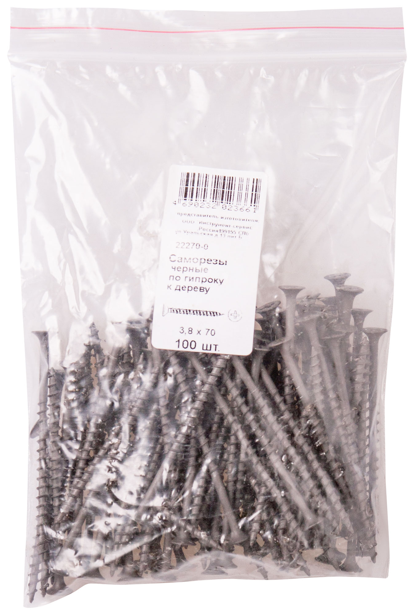 Саморезы черные по гипроку к дереву 4,2 х 70 100 шт (фасовка)