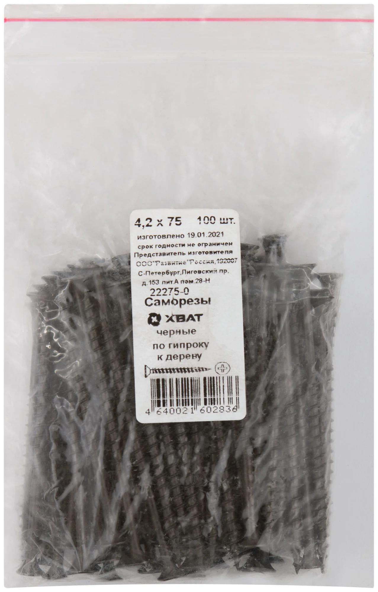 Эти черные саморезы от бренда XВАТ с типоразмером 4,2 х 75 мм позволяют надежно фиксировать листы гипсокартона к деревянным основам без предварительного сверления. Идеальный выбор для мастеров, занимающихся внутренней отделкой и монтажом гипсокартонных конструкций.