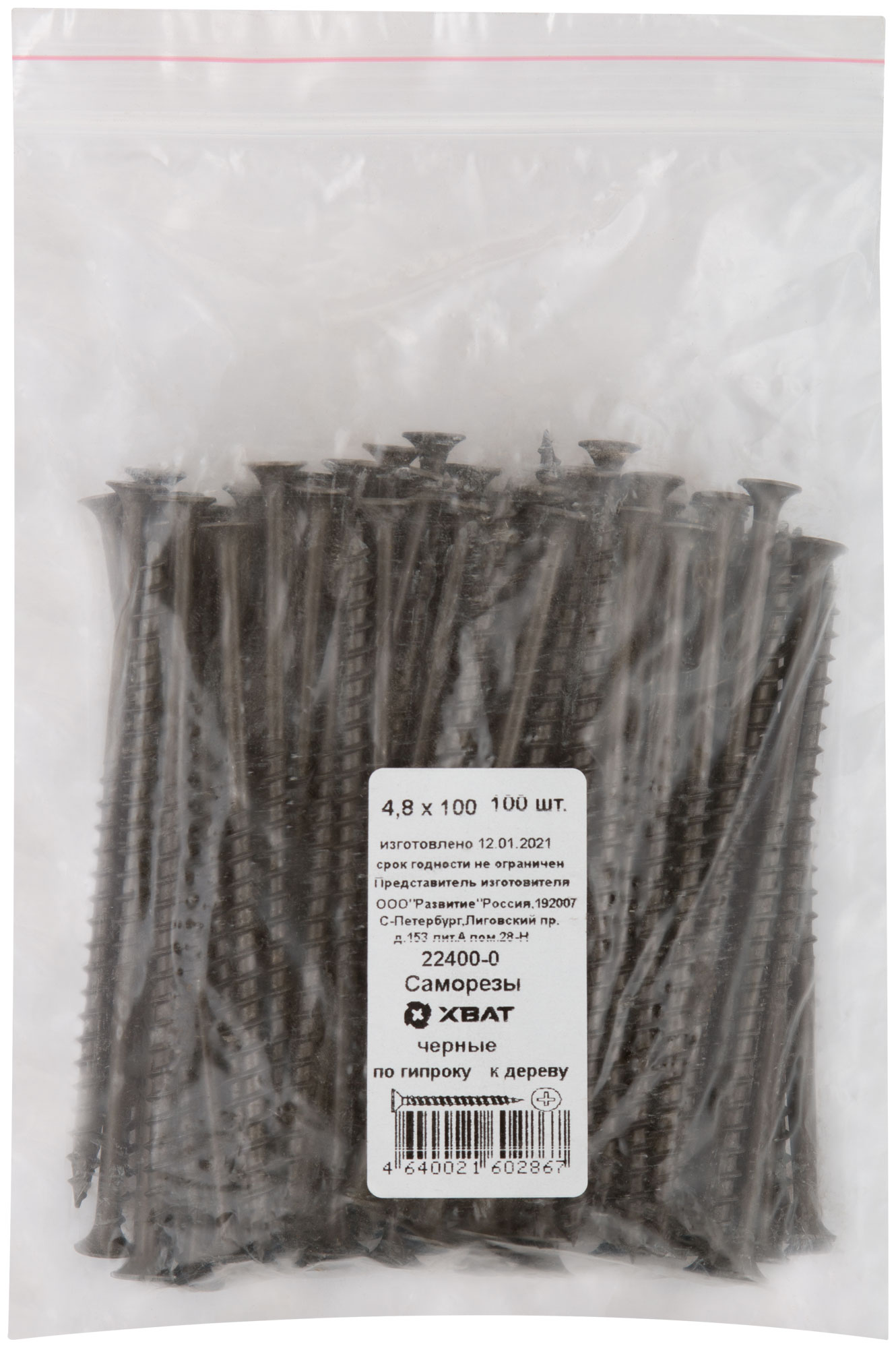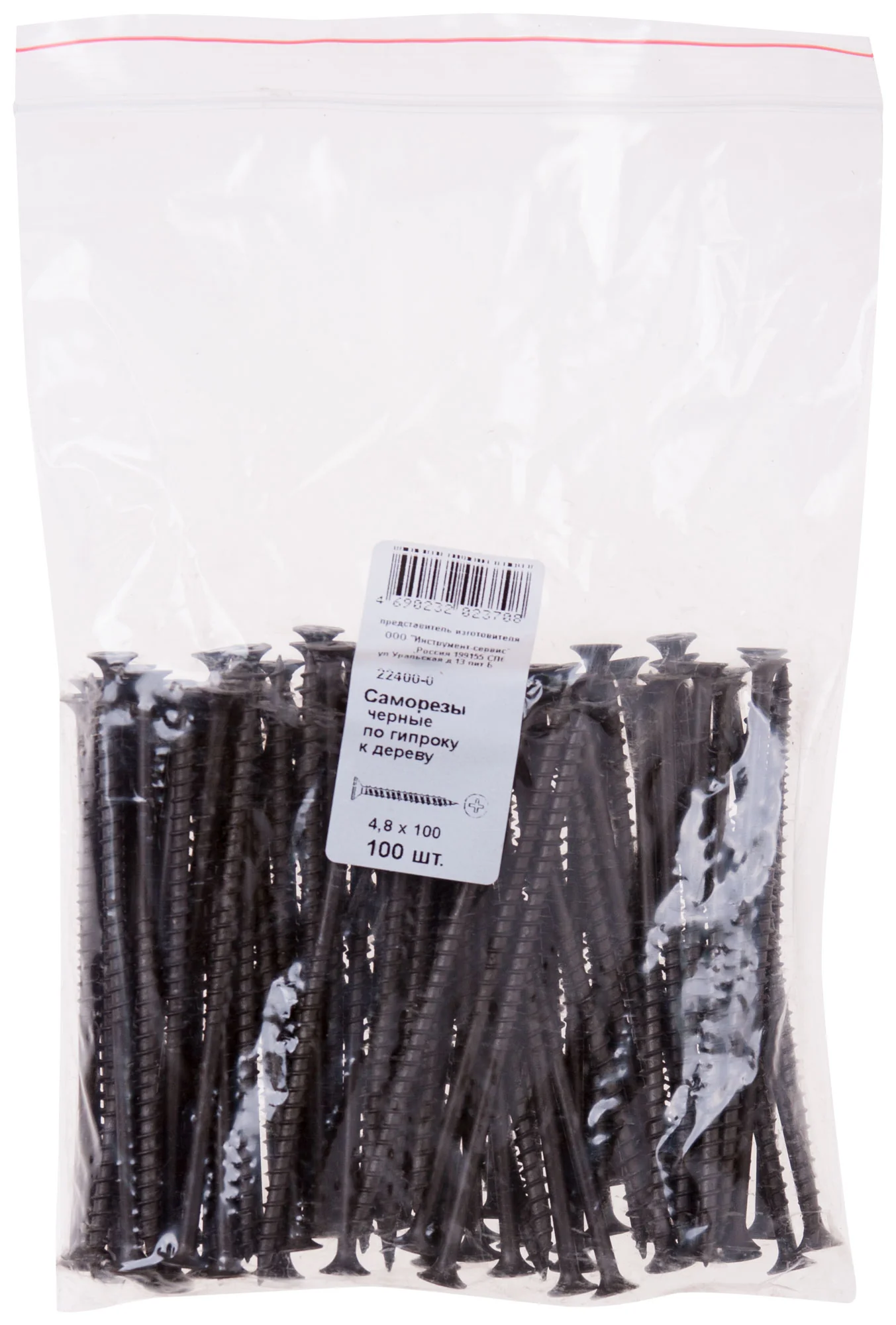 Саморезы черные по гипроку к дереву 4,8 х 100 100 шт Фасовка