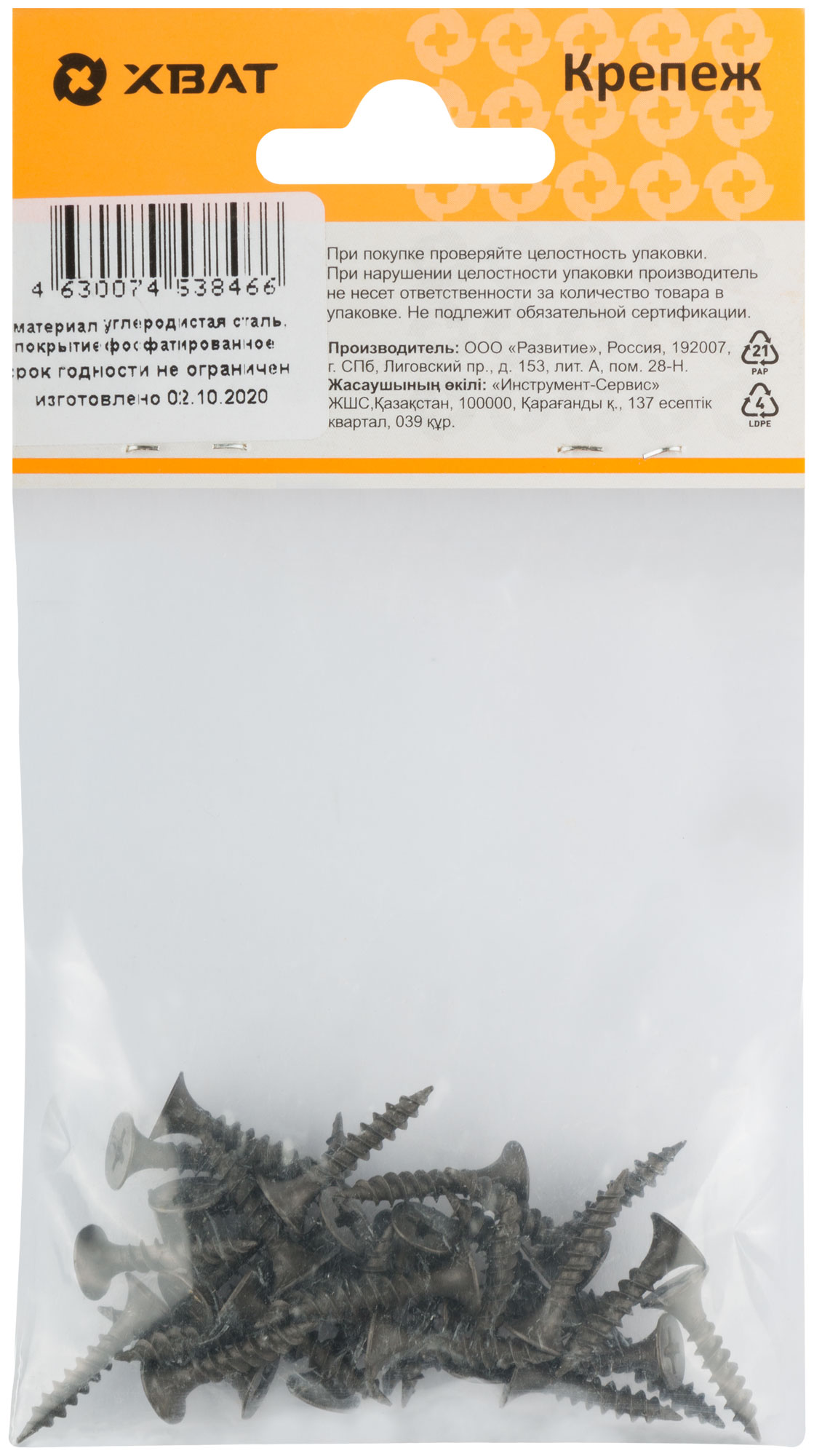 Изготовленные в России, саморезы XВАТ имеют типоразмер 3,5х19 мм и фасовку в 34 штуки, что удобно для небольших работ. Компактная упаковка позволяет легко хранить и транспортировать их на объект.