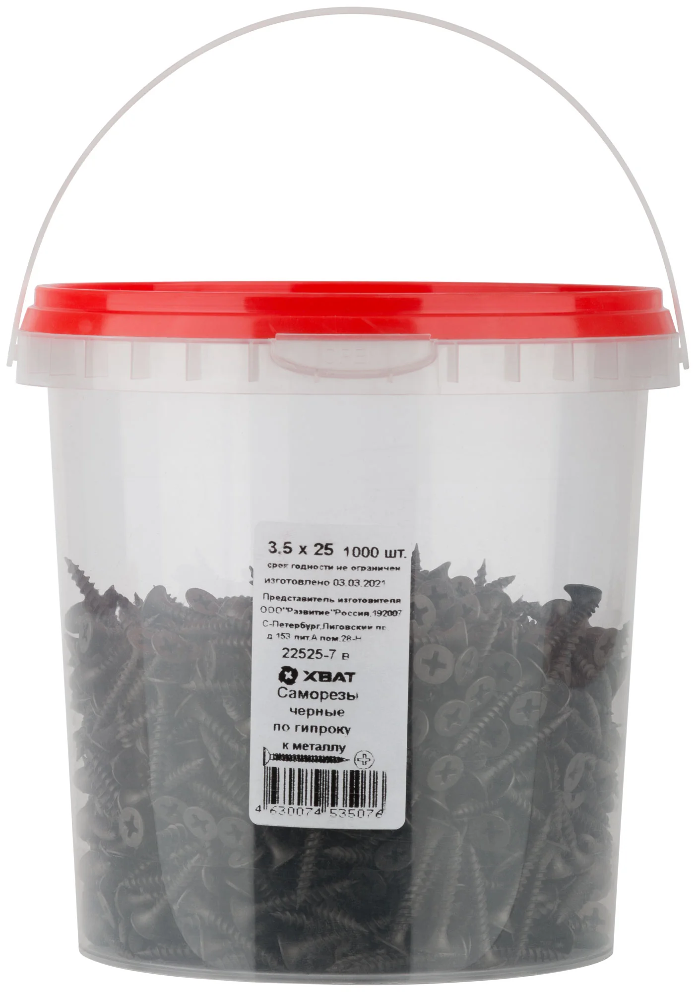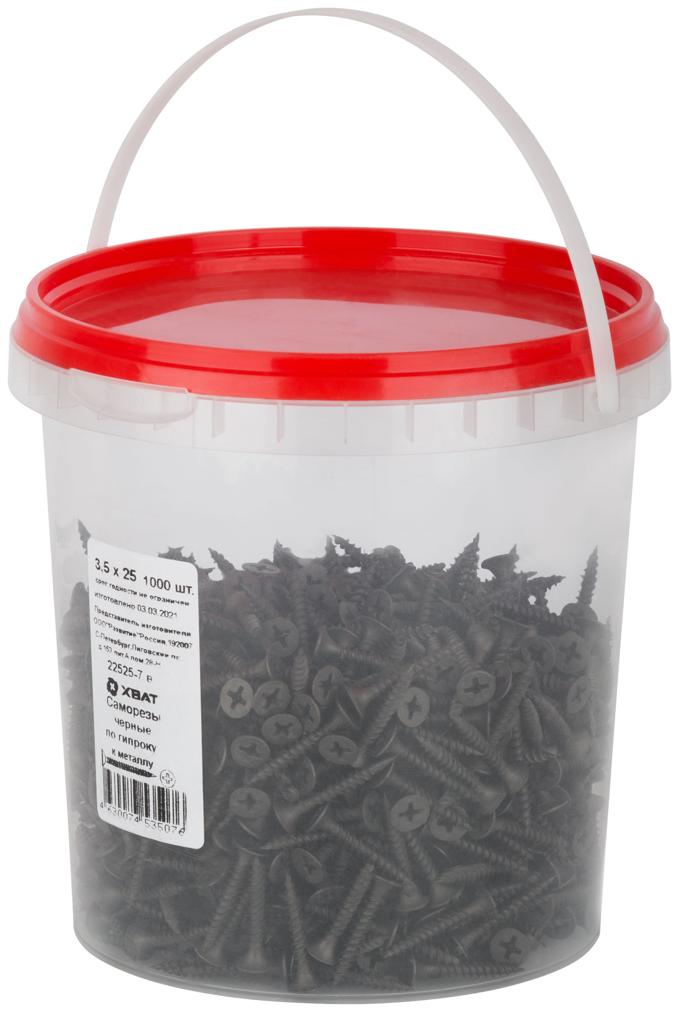 Саморезы черные 3,5 х 25 мм для гипрока к металлу, ведро 1000 шт