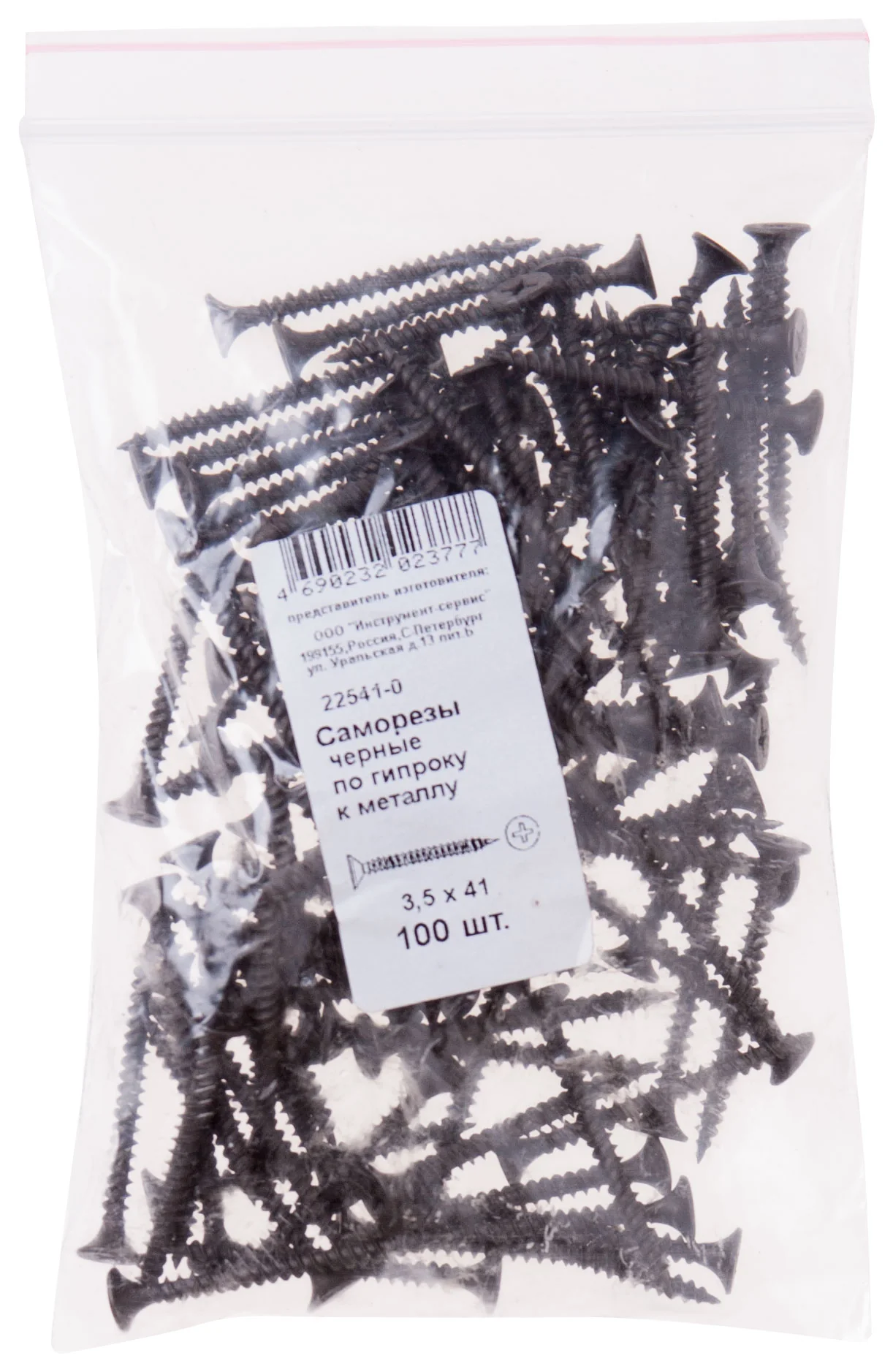 Саморезы имеют фосфатированное покрытие, что защищает их от коррозии и увеличивает срок службы. Частый шаг резьбы обеспечивает надежное сцепление с материалом, предотвращая его смещение. Упаковка содержит 100 саморезов, что удобно для выполнения средних объемов работ.