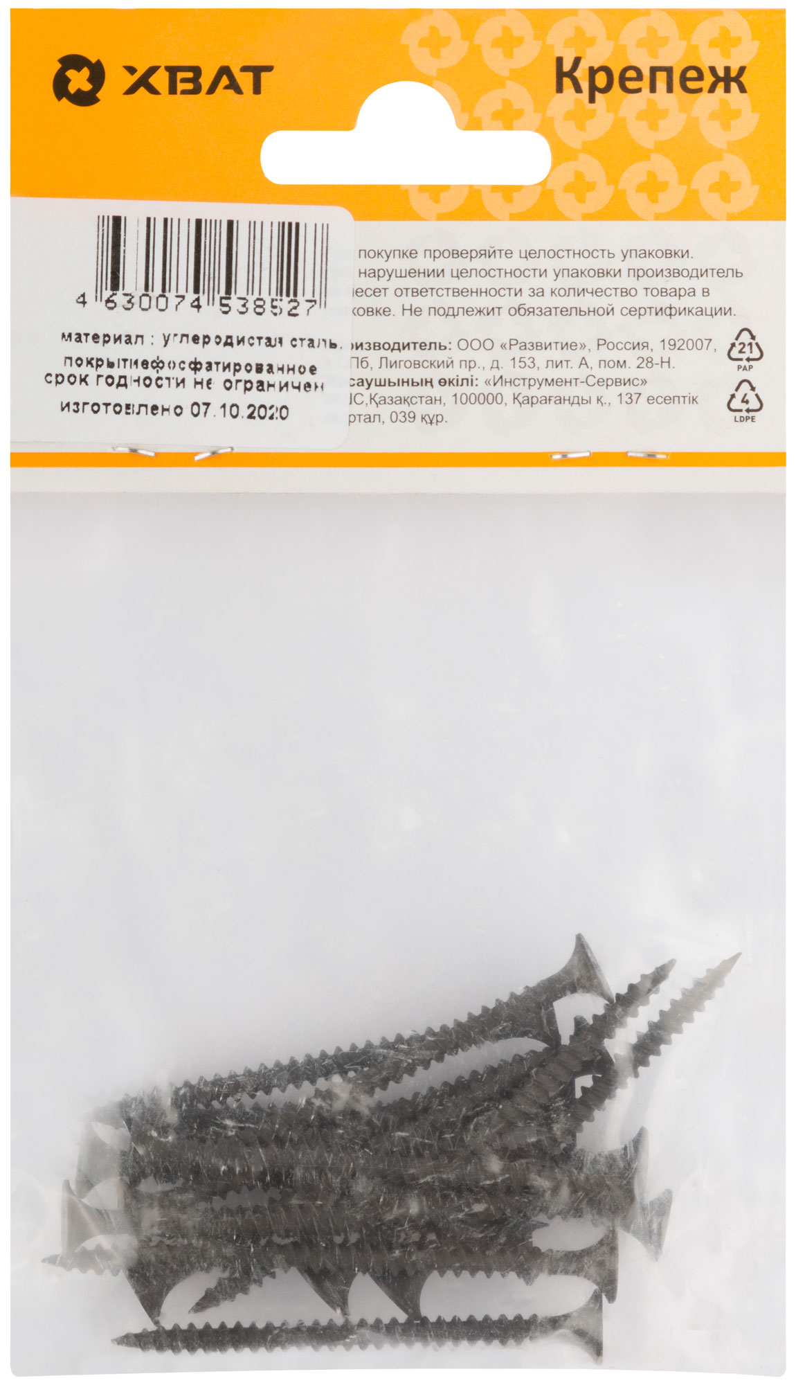 Саморезы имеют фосфатированное покрытие, что защищает их от коррозии и обеспечивает долговечность. Частый шаг резьбы способствует надежному сцеплению с металлом, а фасовка в упаковке на 17 штук делает их удобными для индивидуальных и небольших проектов.
