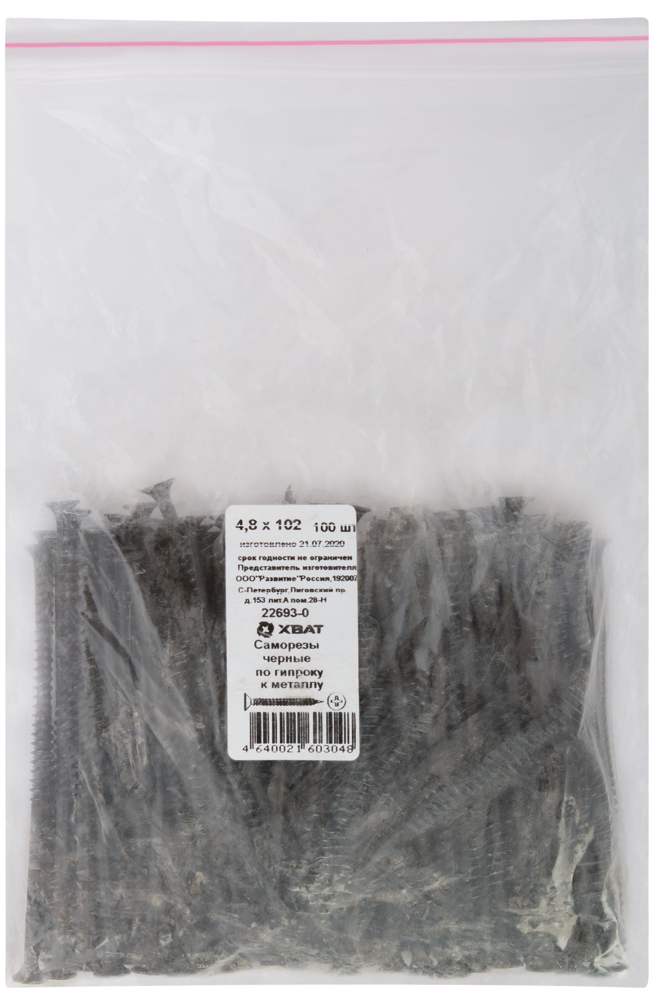 Саморезы XВАТ имеют фосфатированную поверхность, что обеспечивает дополнительную защиту от коррозии. Частый шаг резьбы позволяет крепко удерживать материал, а длина 102 мм гарантирует надежное закрепление на профилях из листового металла толщиной до 0,9 мм.