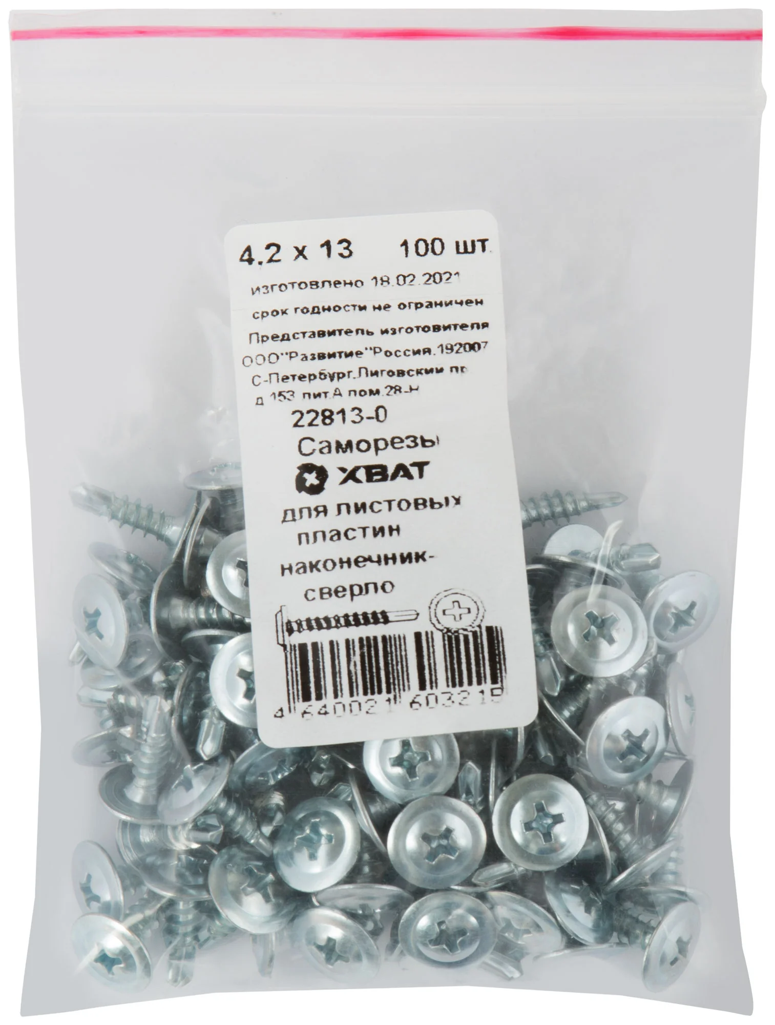 Саморезы для листовых пластин, наконечник-сверло 4,2 х 13 100 шт Фасовка