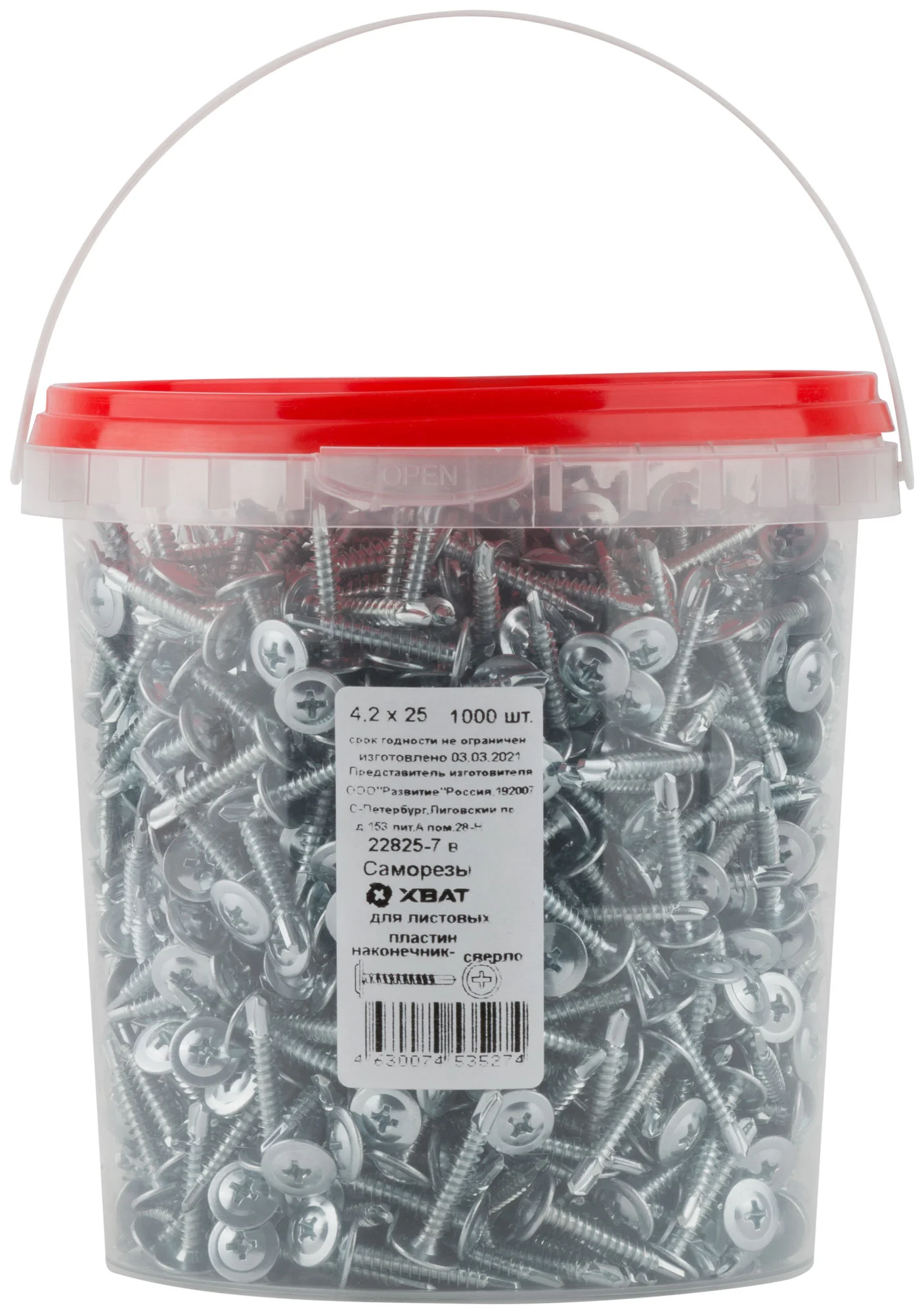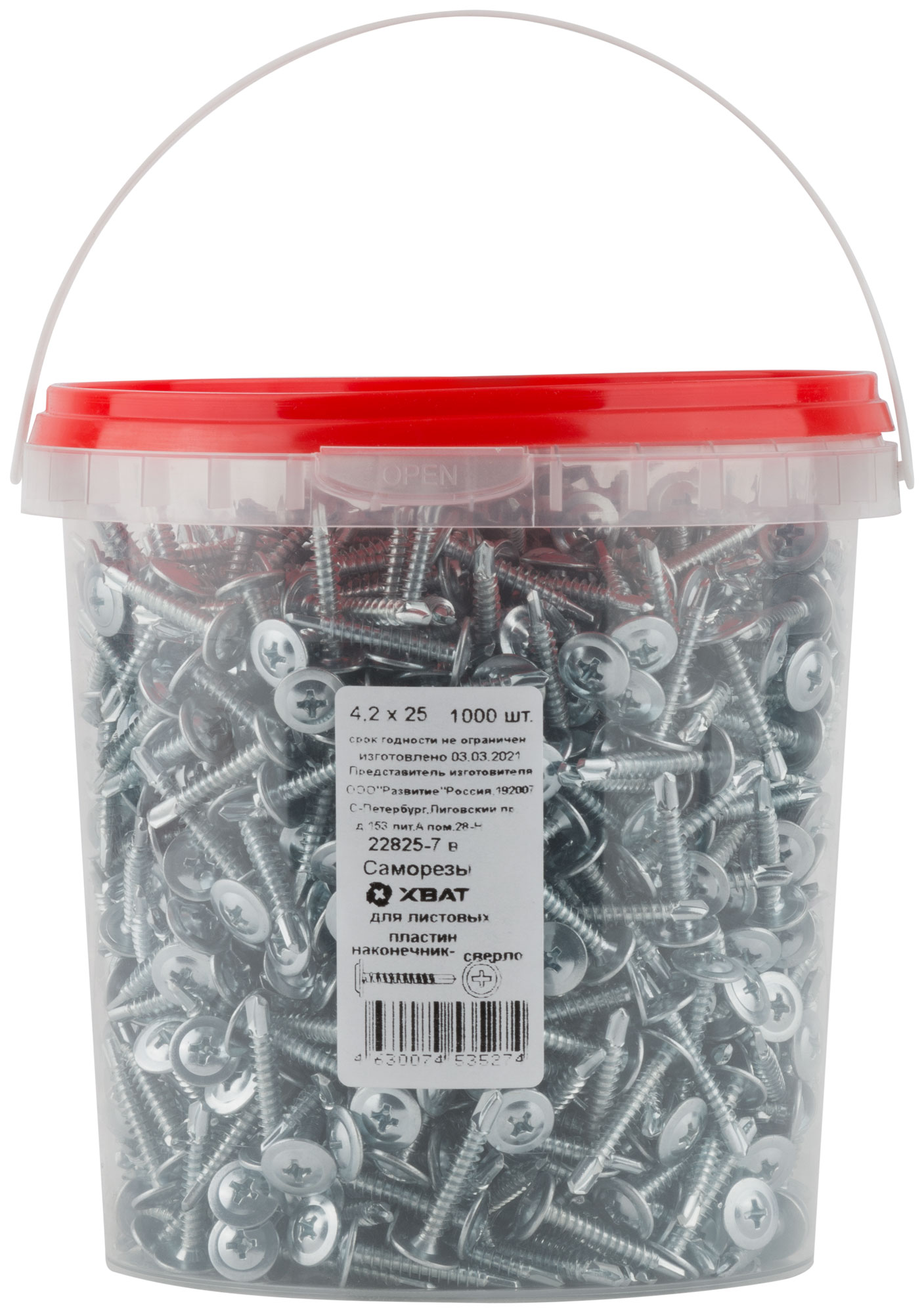 Саморезы XВАТ размером 4,2 х 25 мм с наконечником-сверлом — идеальное решение для крепления листовых пластин к различным конструкциям. Например, вы можете использовать их для монтажа металлических профилей к деревянным или металлическим каркасам без необходимости предварительного сверления отверстий.