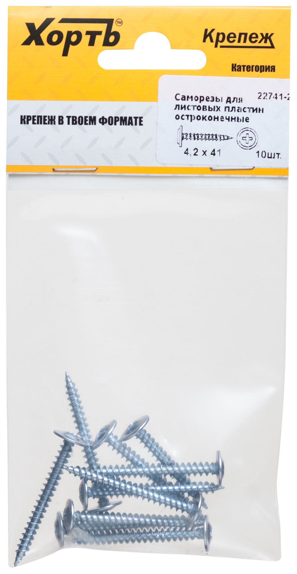 Эти саморезы обеспечивают удобство в использовании благодаря универсальному размеру 4,2 х 41 мм и возможности крепления как к дереву, так и к металлу. Упаковка из 10 штук позволяет экономично расходовать материал при небольших объемах работ.