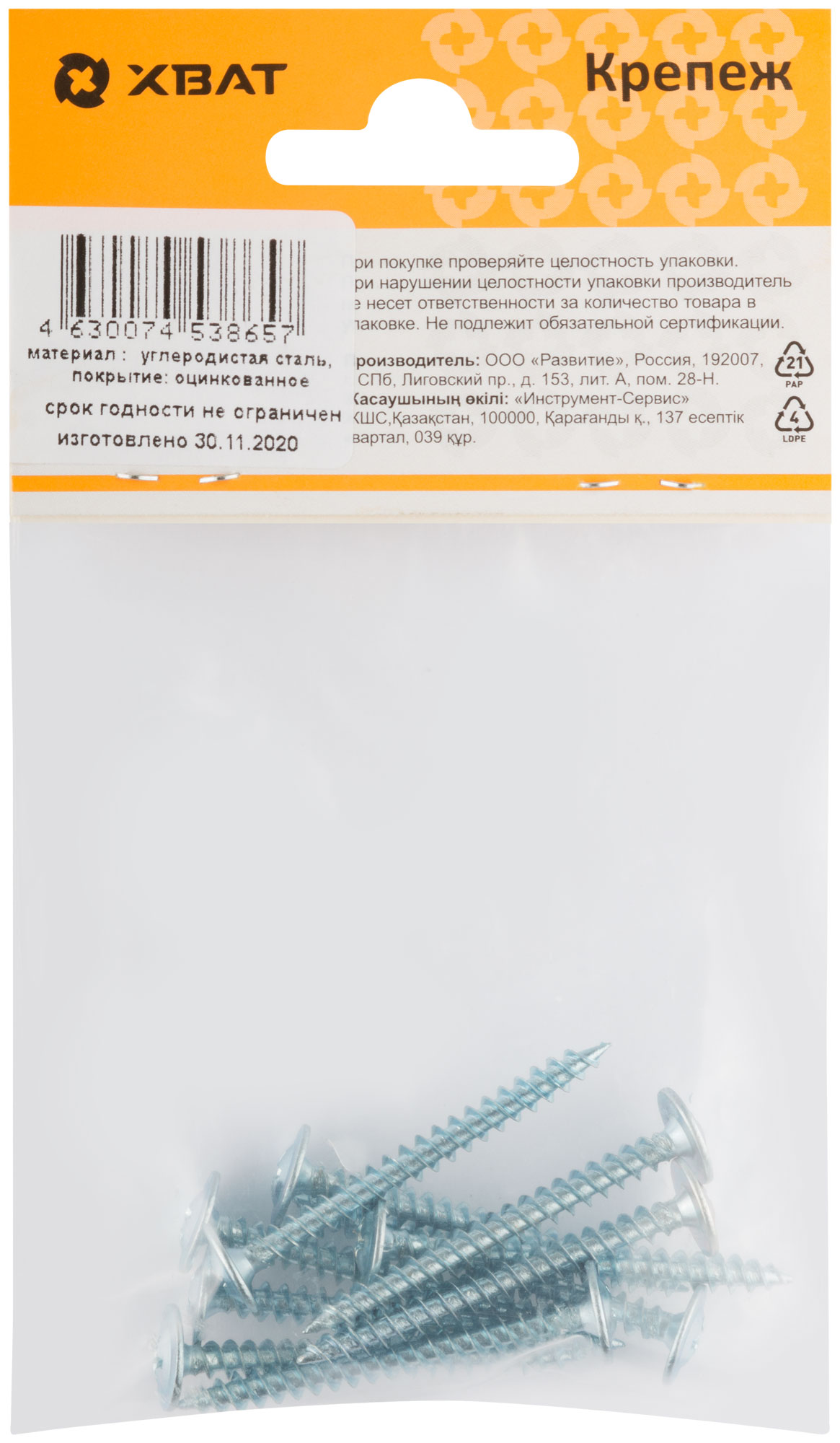 Саморезы имеют полусферическую головку с пресс-шайбой и покрыты цинковым слоем, что повышает их стойкость к коррозии и долговечность использования. Частый шаг резьбы гарантирует надежное сцепление с материалом.
