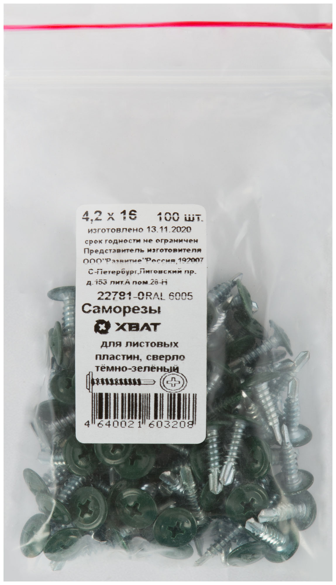 Типоразмер: 4,2х16 темно-зеленый (100шт.)