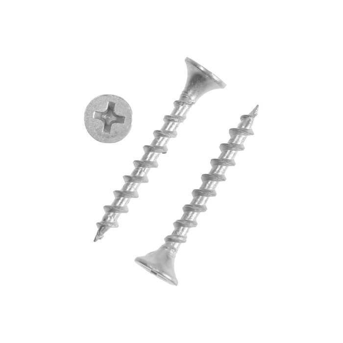 - Оптимальная геометрия: Потайная головка с крестообразным шлицем PH2 утапливается в материал, не мешая дальнейшей отделке. Острая резьба и наконечник снижают усилие при вкручивании и предотвращают растрескивание дерева.