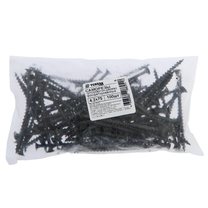 Саморезы гипсокартон-дерево ТУНДРА krep 4.2×75 мм, фосфатированные, 100 шт. — Характеристики