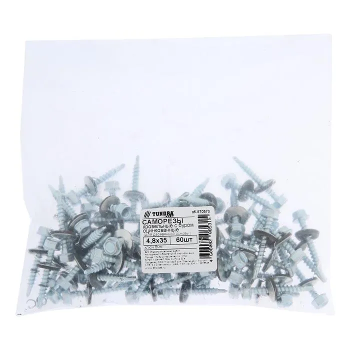 Саморезы кровельные ТУНДРА krep с буром 4.8×35 мм, цинк, 60 шт.