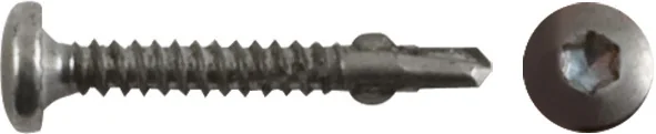 Саморезы оснащены полукруглой головкой Torx, что обеспечивает надёжную фиксацию и предотвращает выскальзывание инструмента. Крылышки на стержне позволяют предварительно рассверливать отверстие, упрощая процесс крепления и снижая риск повреждения материала.