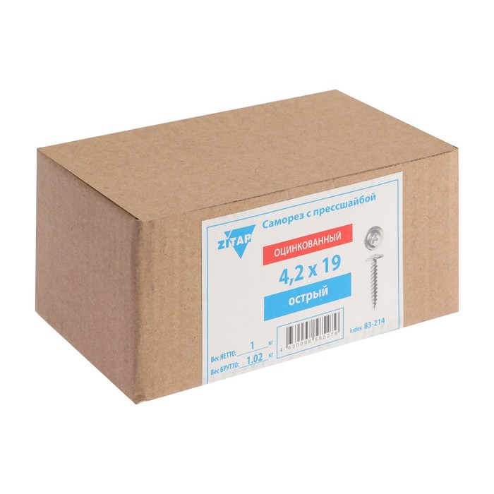Саморез с прессшайбой, 4.2х16 мм, острый, цинк, 13000 шт.