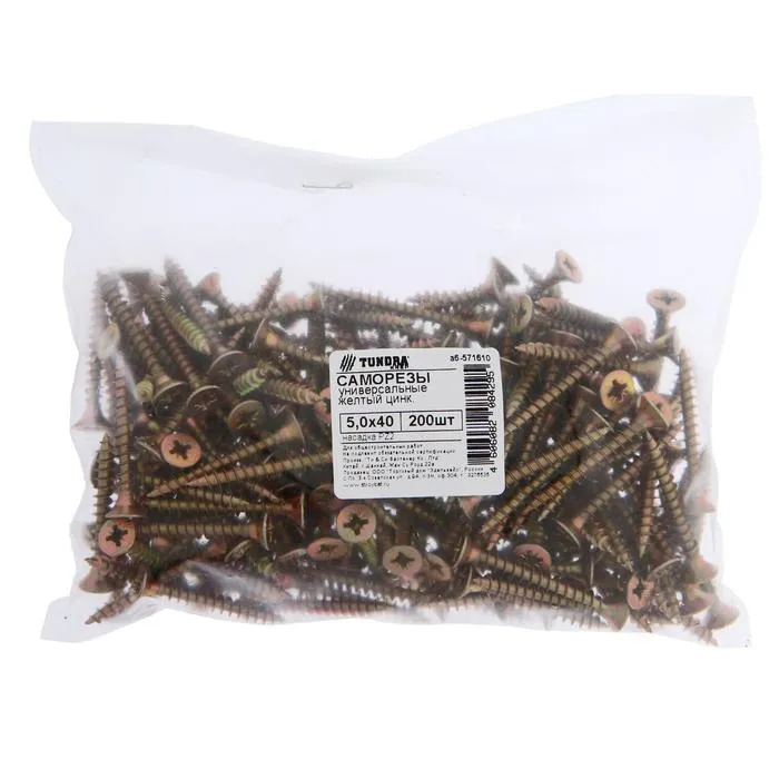 Саморезы универсальные ТУНДРА krep 5.0×40 мм, желтый цинк, 200 шт. — Характеристики