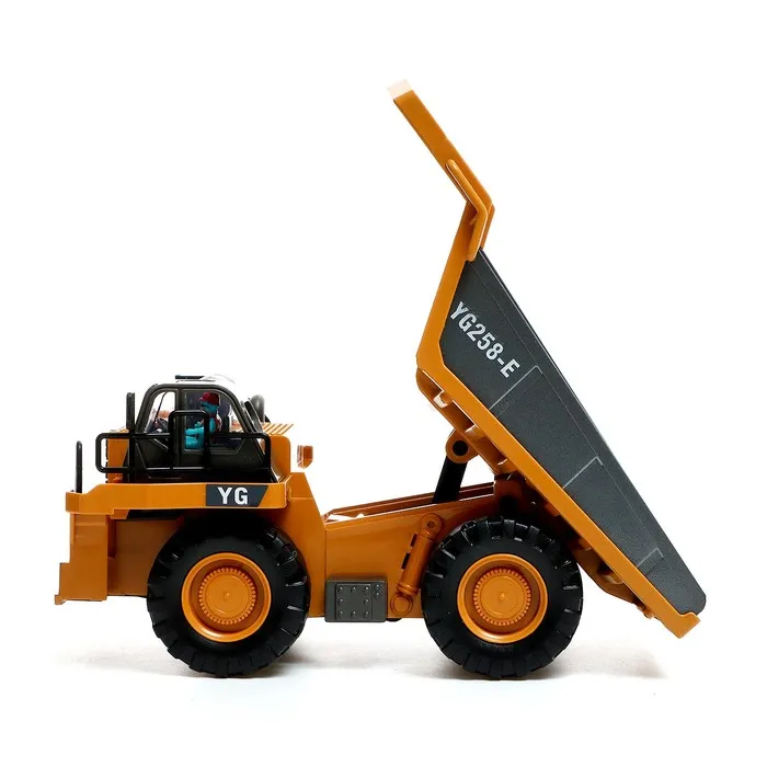 • Подвижный кузов: кузов самосвала легко поднимается и опускается, позволяя выгружать груз весом до 2,5 кг. Ваш малыш сможет перевозить песок, камни или другие предметы, создавая свои собственные строительные проекты.