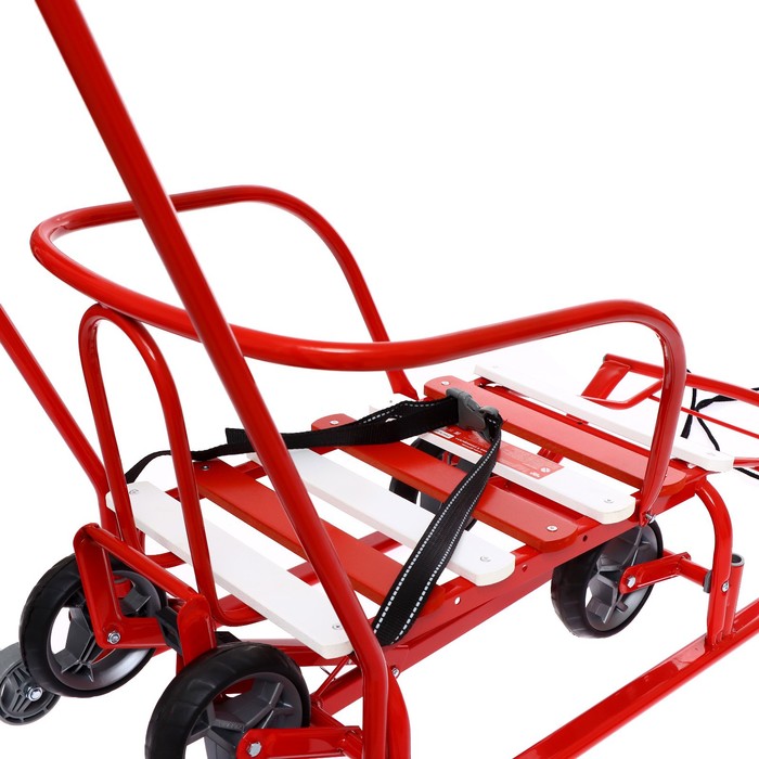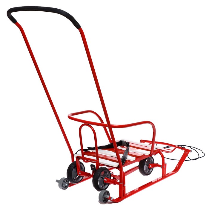 Санки детские с колёсами «Тимка 5 универсал», с ручкой, цвет алый — Характеристики