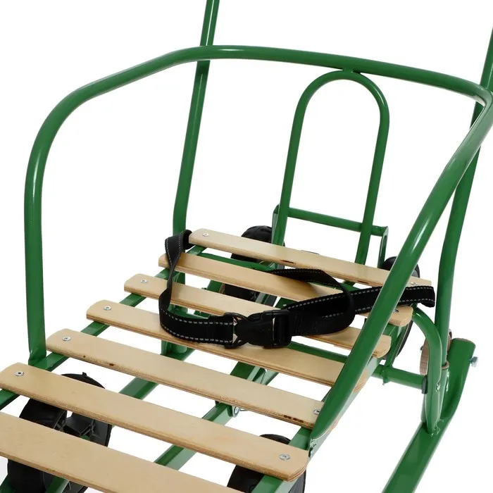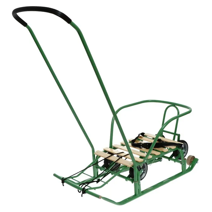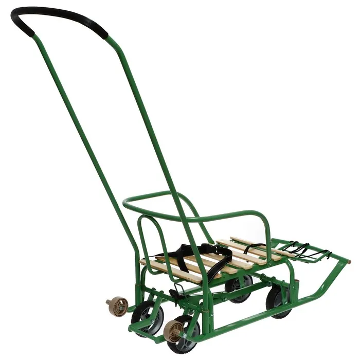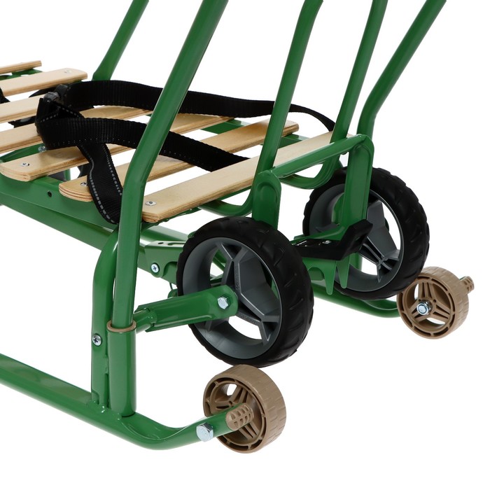 Санки детские с колёсами «Тимка 5 универсал», с ручкой, цвет оливковый — Характеристики
