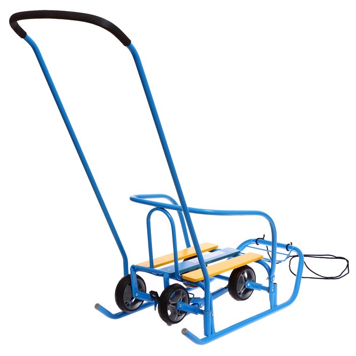 Санки детские с колёсами «Ветерок 7 универсал», с ручкой, цвет голубой — Характеристики