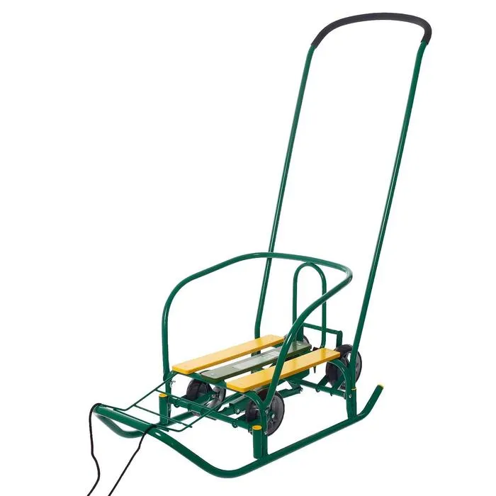 - Колёса и полозья позволяют свободно передвигать санки по любой дороге.