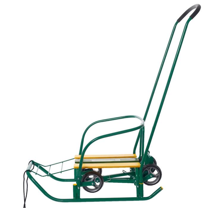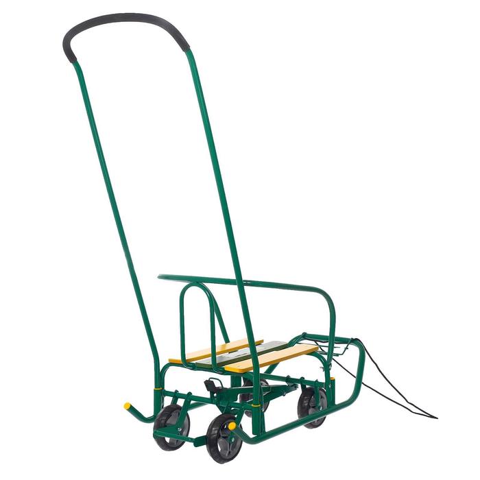Санки детские с колёсами «Ветерок 7 универсал», с ручкой, цвет зелёный — Характеристики