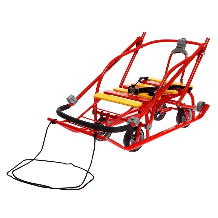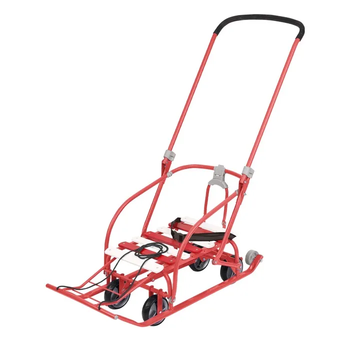 Санки детские складные Nikki 3, с колёсами, с ручкой, цвет красный — Характеристики